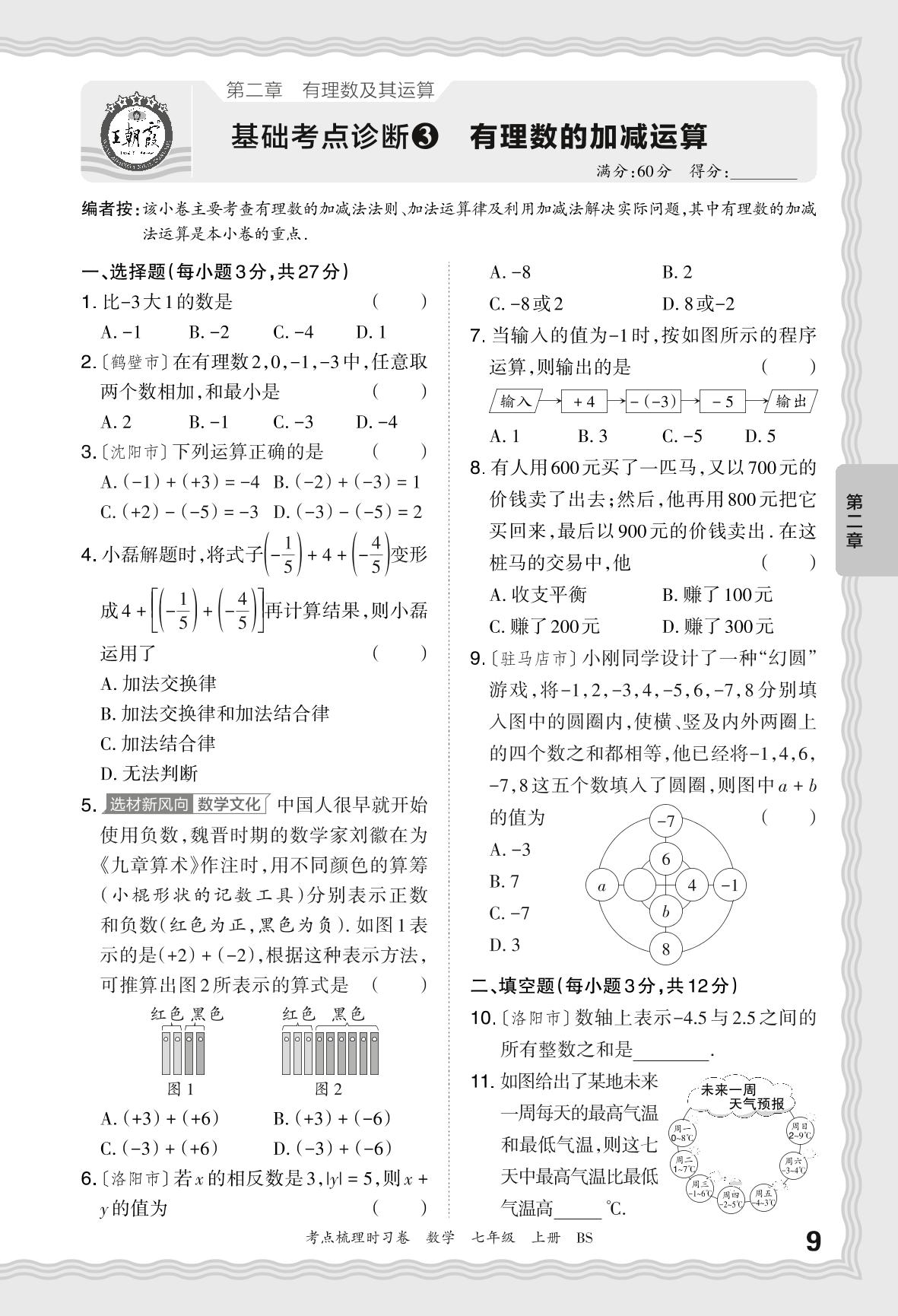 2024秋上册七年级数学北师版 第二章 基础考点诊断 有理数的加减运算【3】
