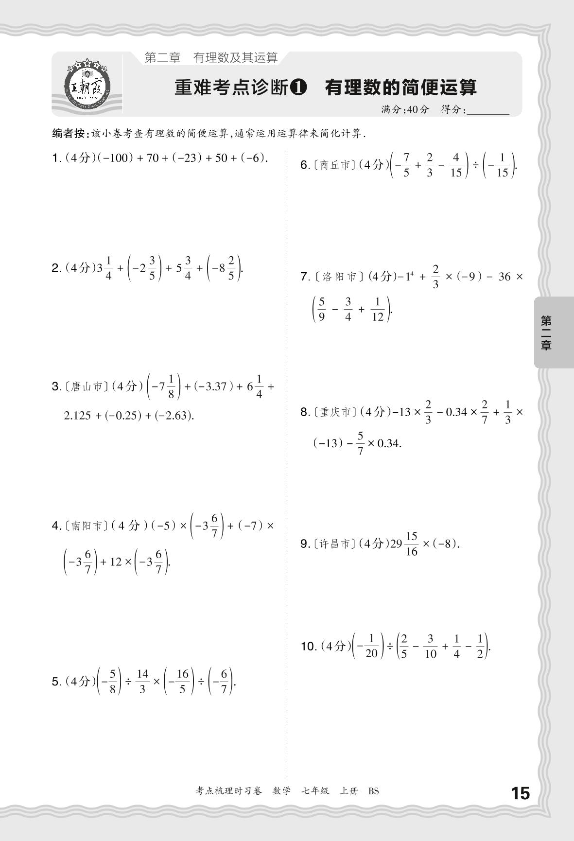 2024秋上册七年级数学北师版 第二章 重难考点诊断 有理数的简便运算【1】