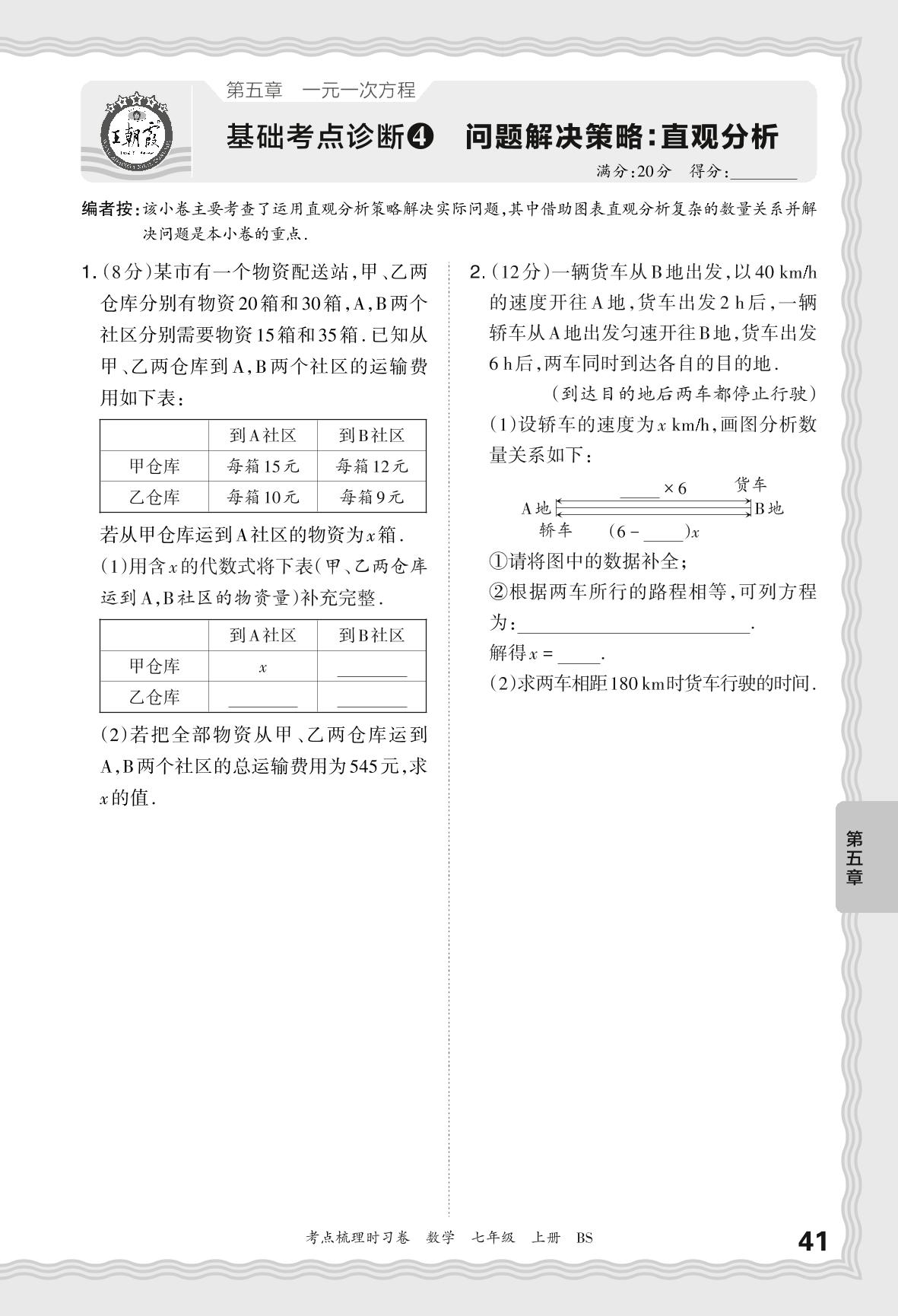 2024秋上册七年级数学北师版 第五章 基础考点诊断 问题解决策略:直观分析【4】