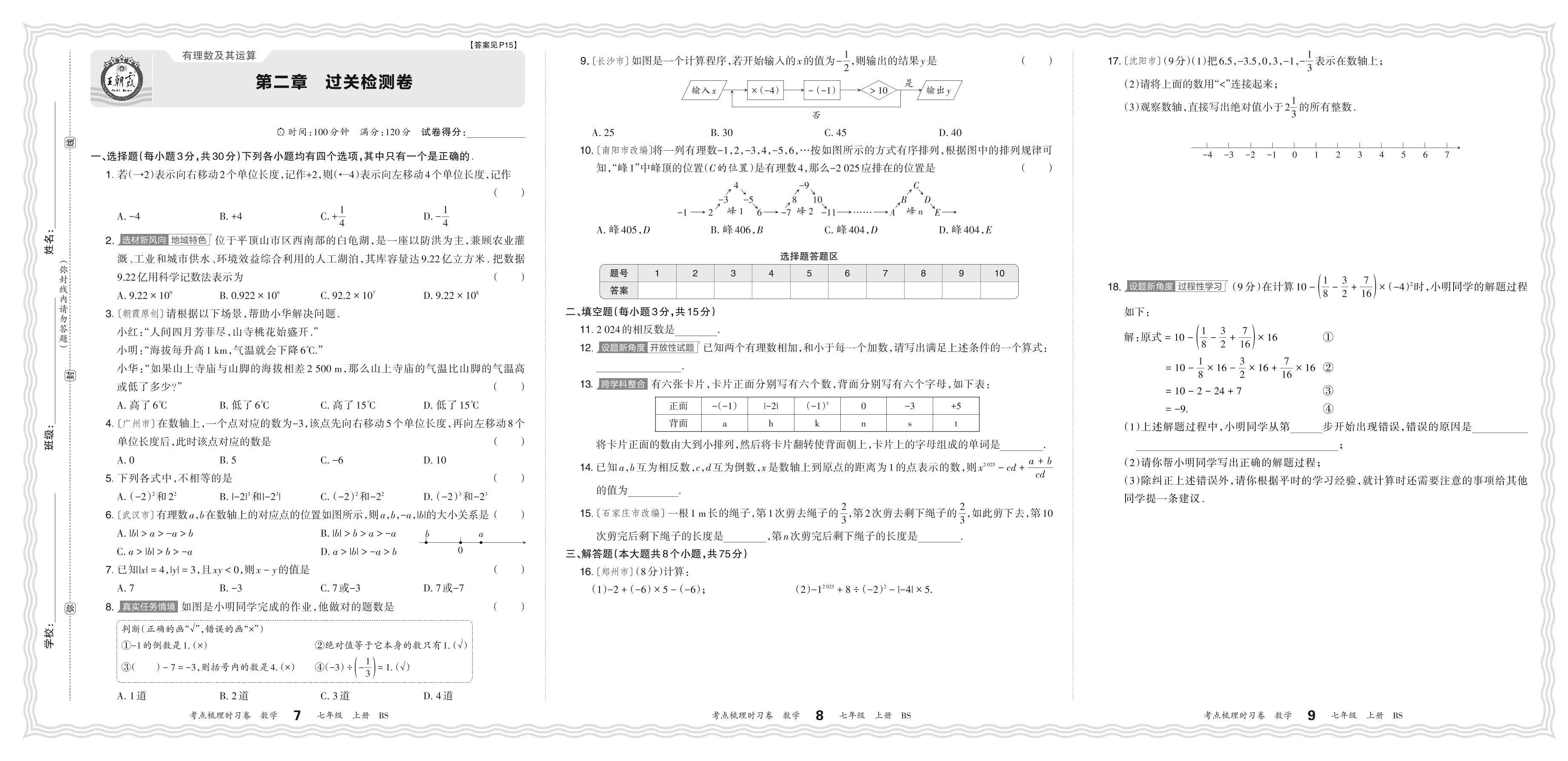 2024秋上册七年级数学北师版 第二章 过关检测卷