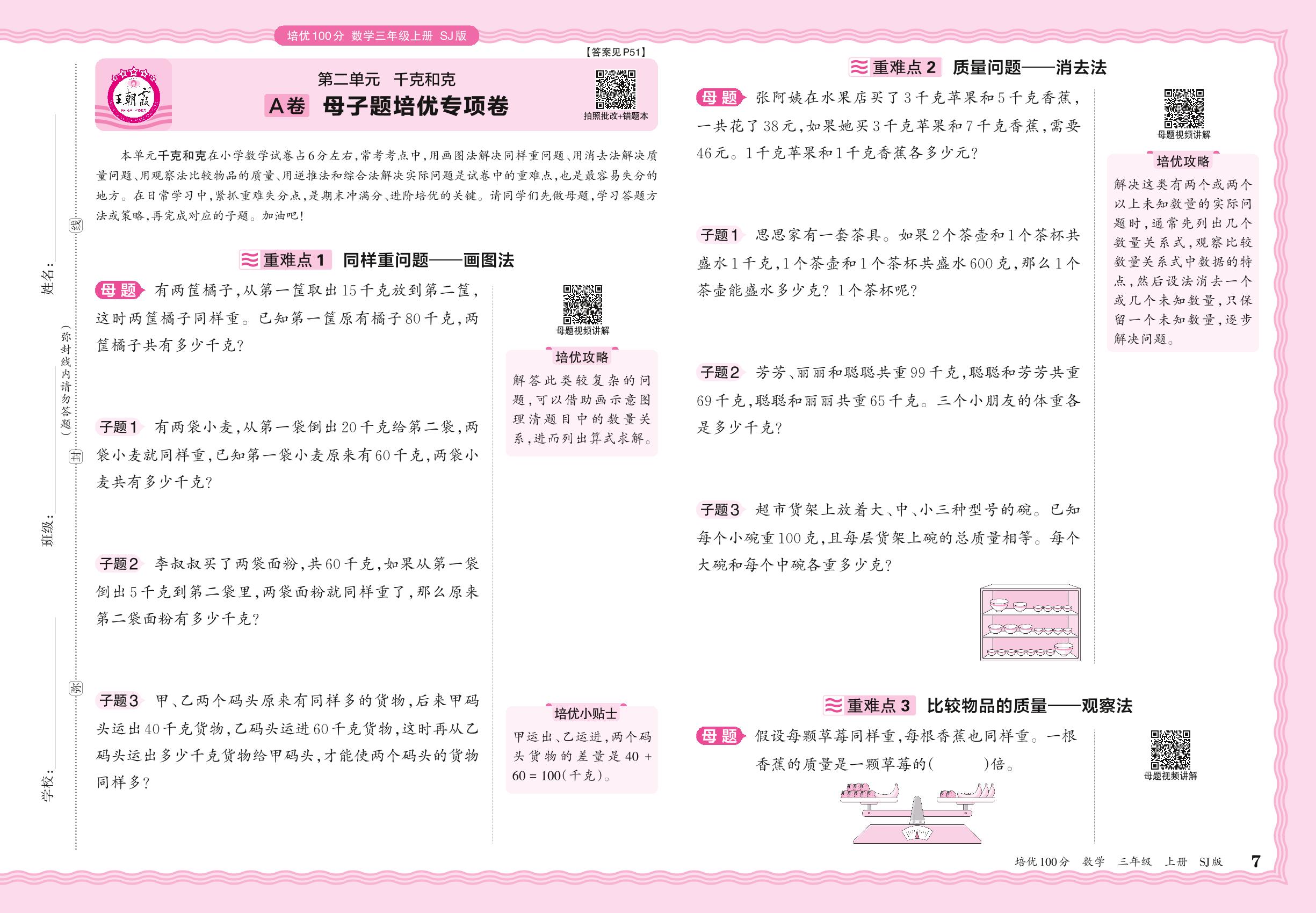 2024秋上册三年级数学苏教版 第二单元A卷 母子题培优专项卷