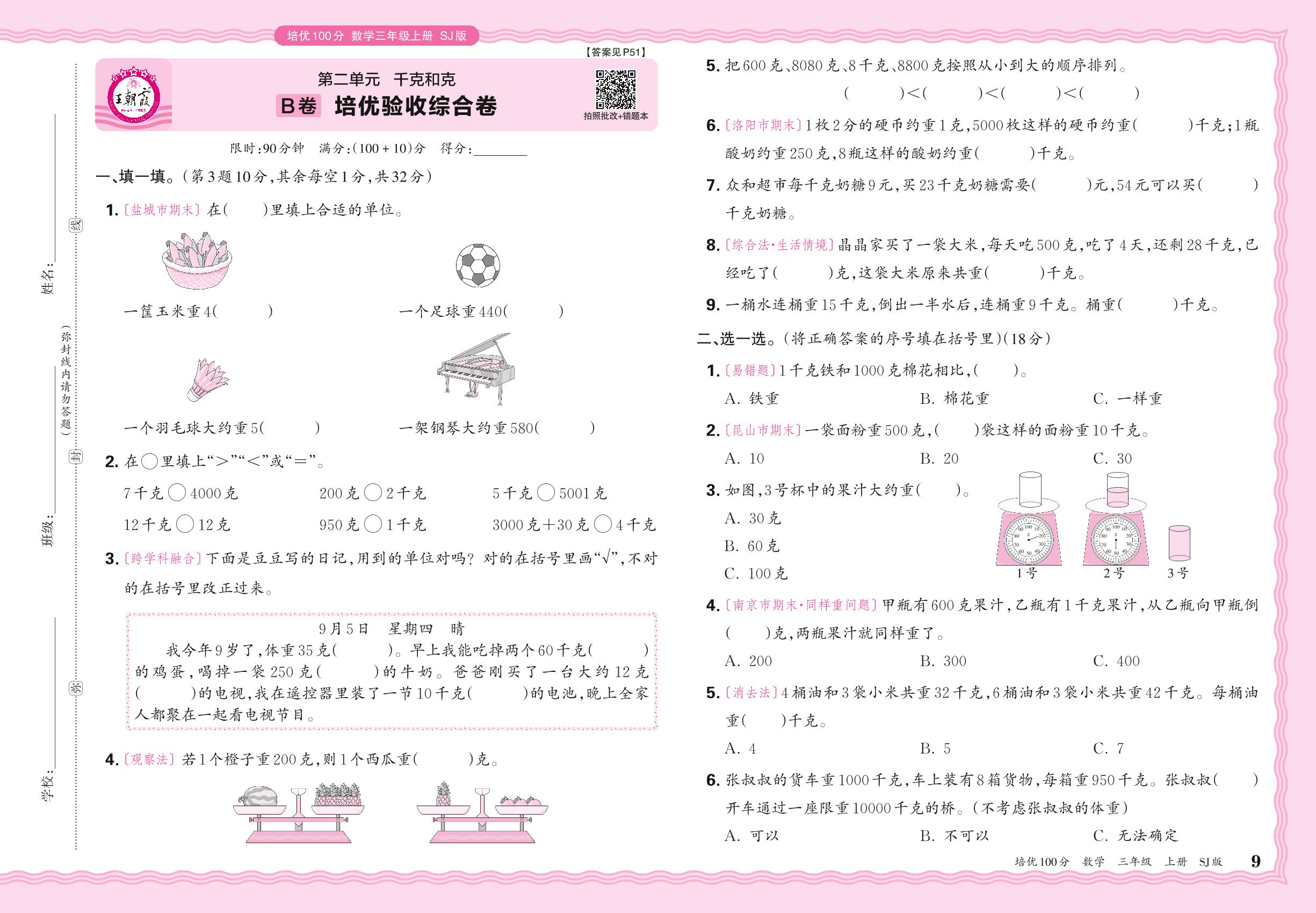 2024秋上册三年级数学苏教版 第二单元B卷 培优验收综合卷_R240827103556652