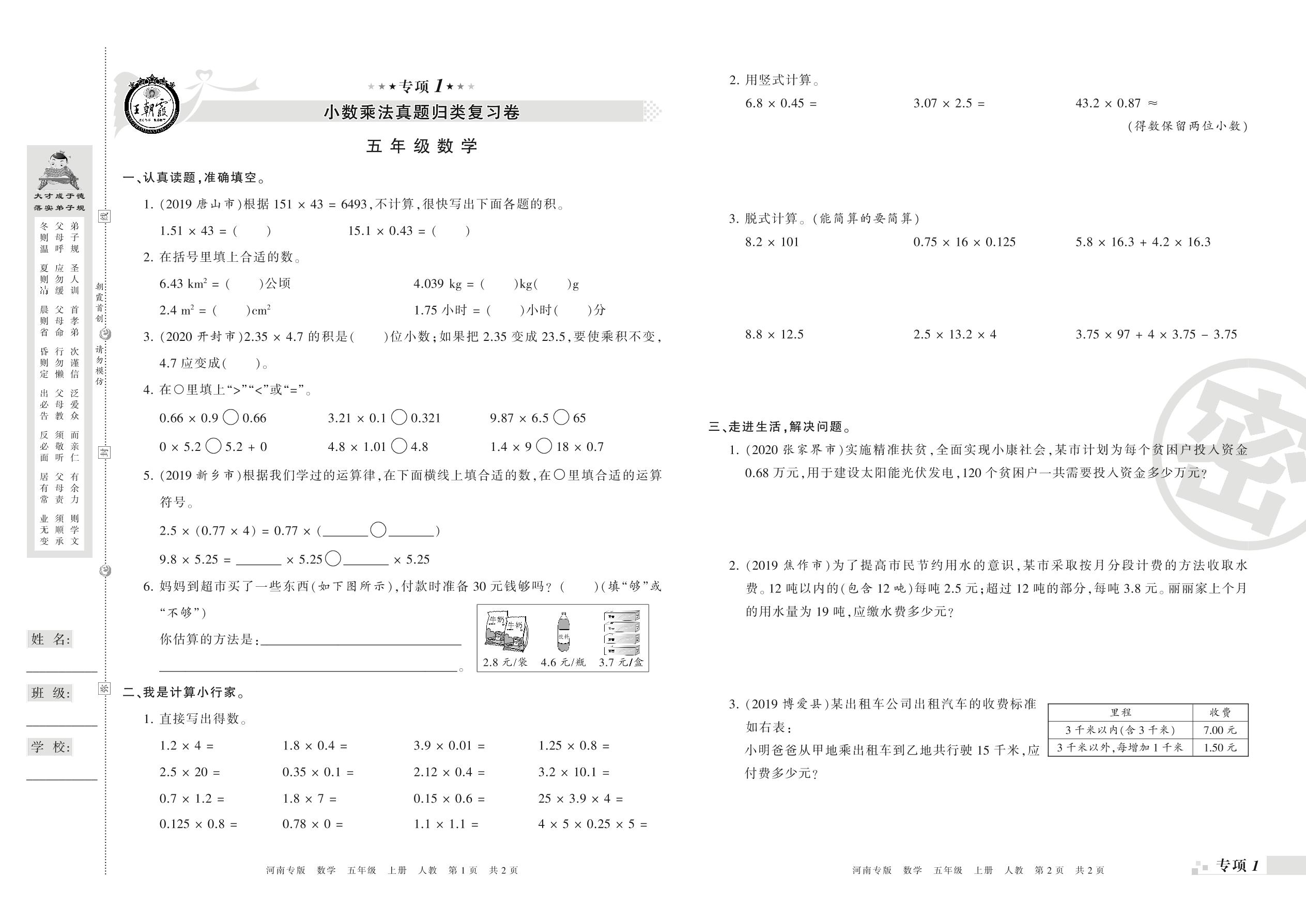 王朝霞期末专项卷——小数乘法、小数除法真题归类复习五年级上册数学(人教版)_R210804163947【0】