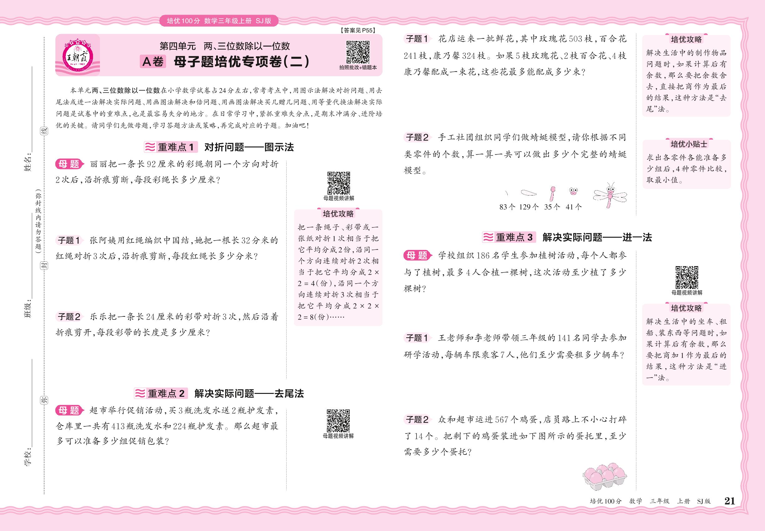 2024秋上册三年级数学苏教版 第四单元A卷 母子题培优专项卷(二)