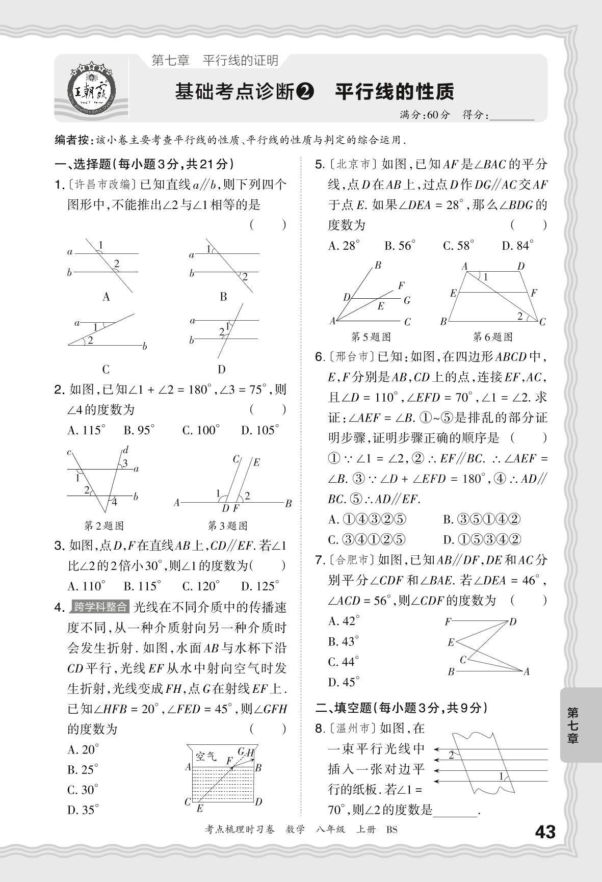 2024秋上册八年级数学北师版 第七章 基础考点诊断 平行线的性质【2】