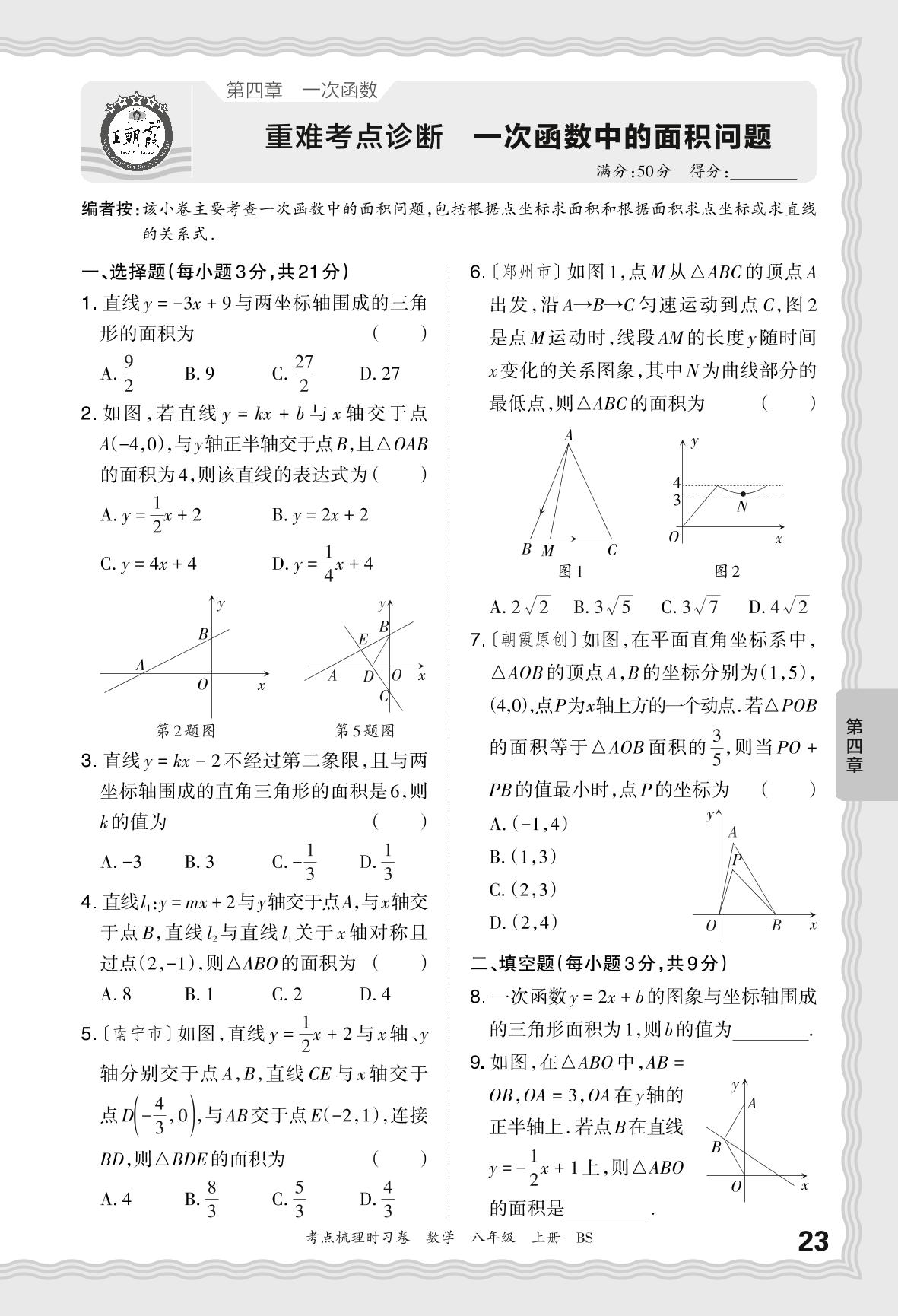 2024秋上册八年级数学北师版 第四章 重难考点诊断 一次函数中的面积问题