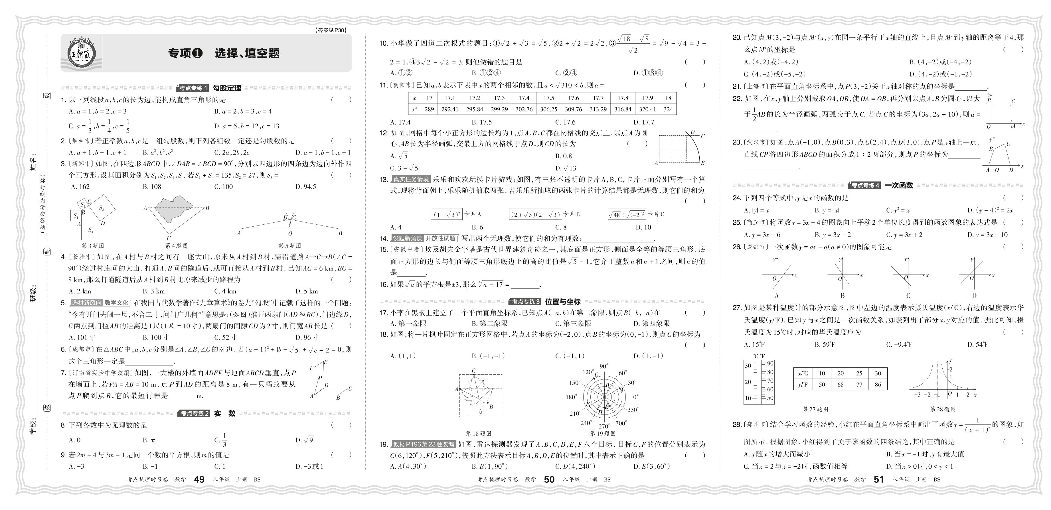 2024秋上册八年级数学北师版 期末专项卷KD版·选择、填空题【1】