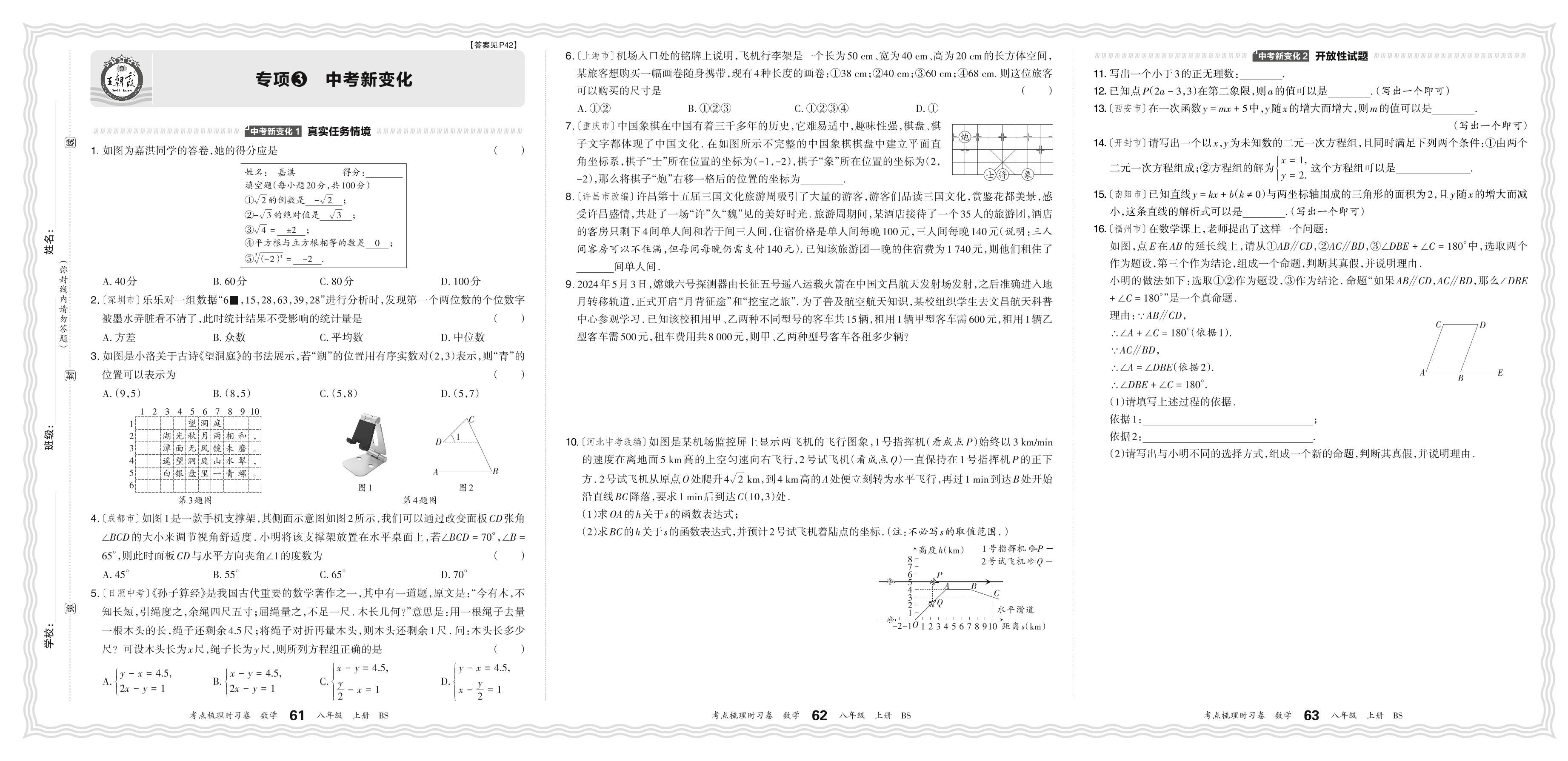 2024秋上册八年级数学北师版 期末专项卷KD版·中考新变化【3】