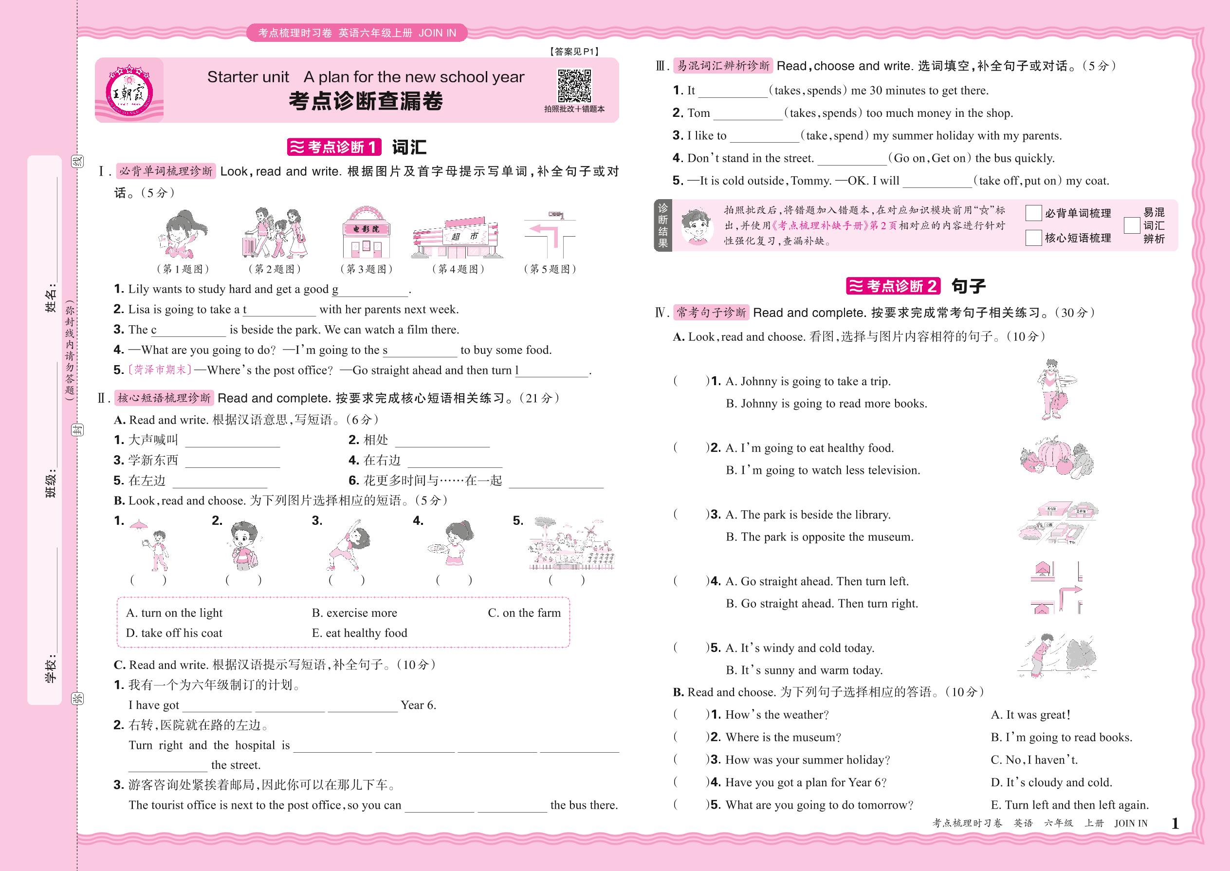 2024秋上册六年级英语剑桥版 Starter unit 考点诊断查漏卷