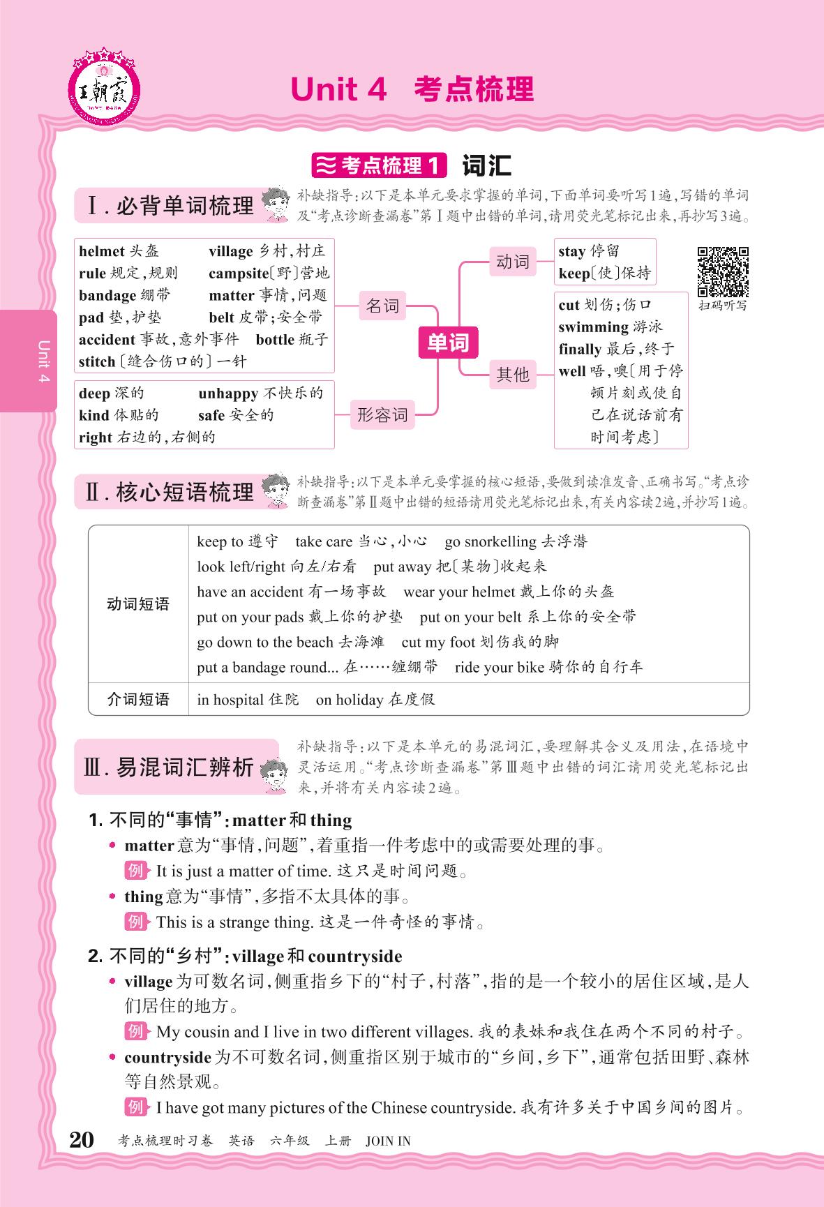 2024秋上册六年级英语剑桥版 考点梳理补缺手册——Unit 4