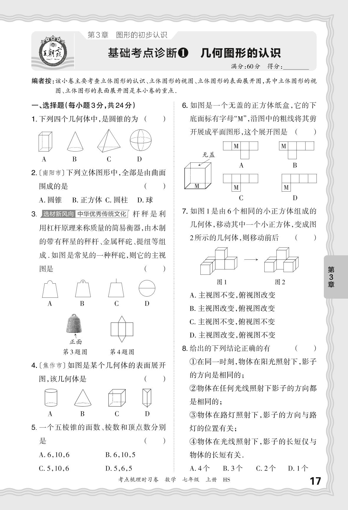 2024秋上册七年级数学华师版 第3章 基础考点诊断 几何图形的认识【1】