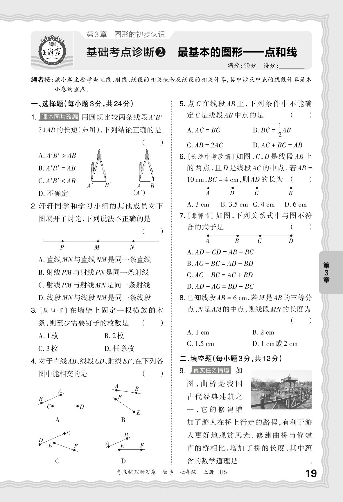2024秋上册七年级数学华师版 第3章 基础考点诊断 最基本的图形——点和线【2】