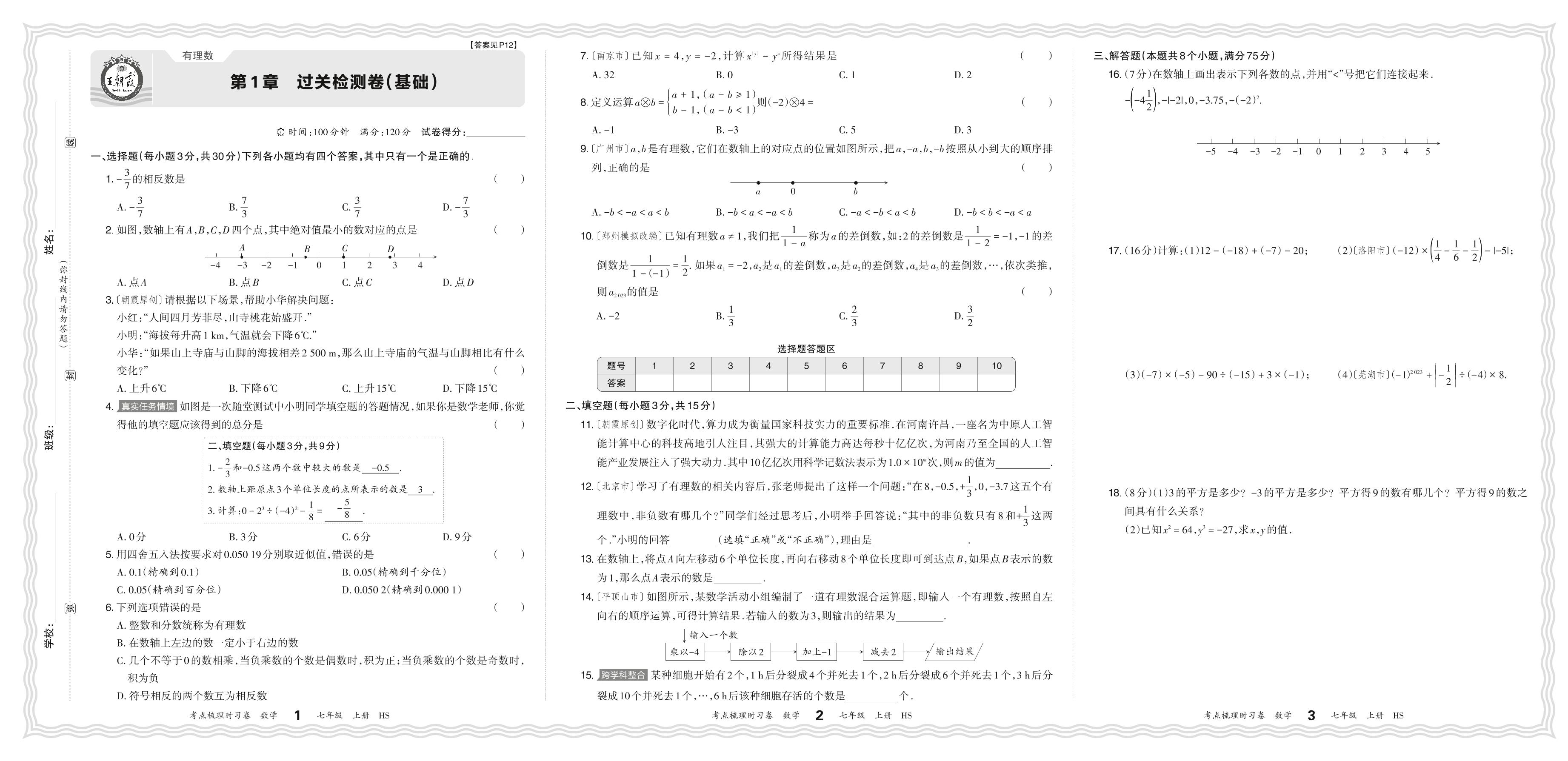 2024秋上册七年级数学华师版 第1章 过关检测卷(基础)