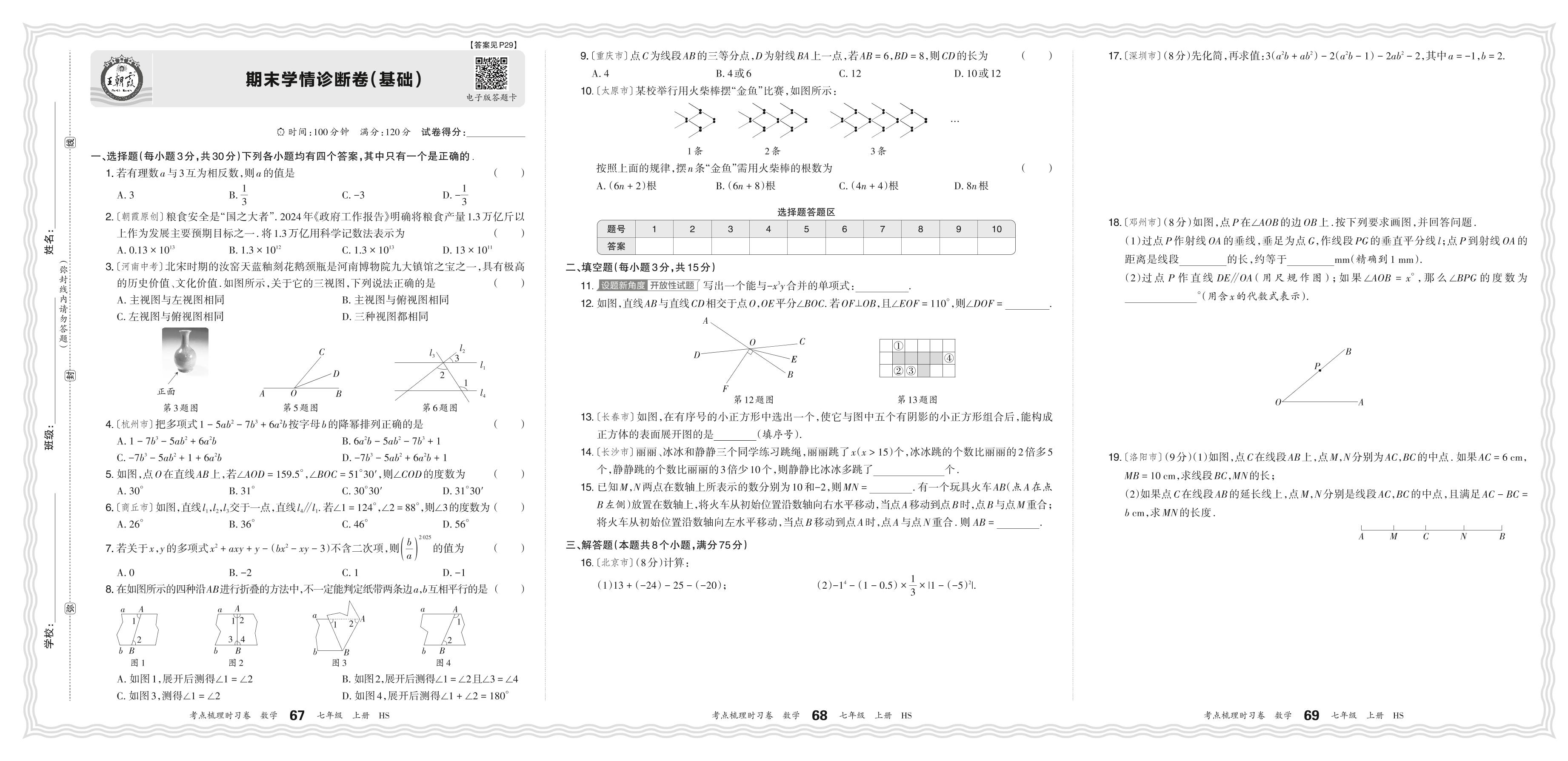2024秋上册七年级数学华师版 期末学情诊断卷(基础)