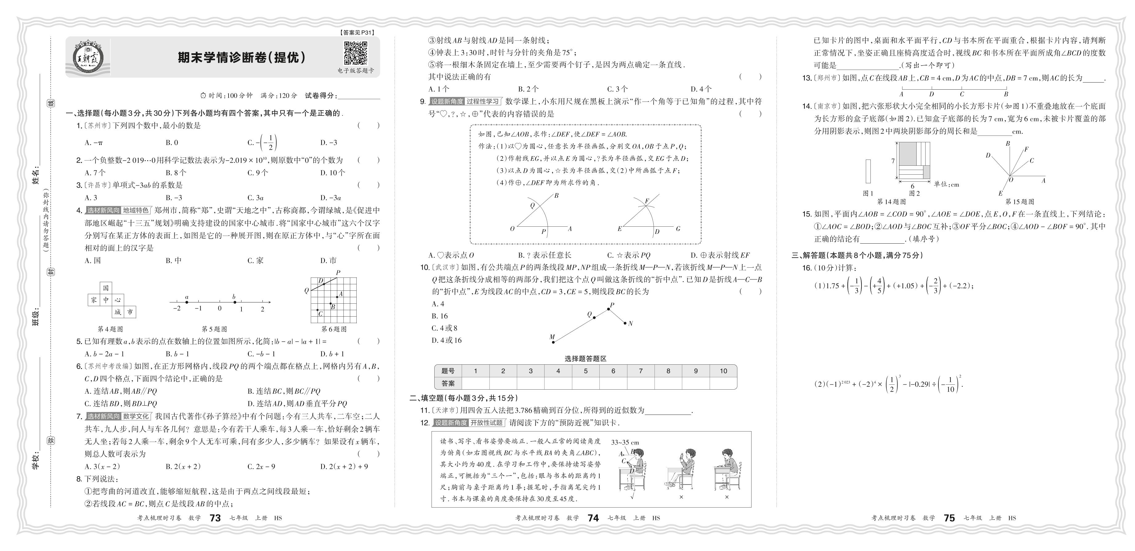 2024秋上册七年级数学华师版 期末学情诊断卷(提优)