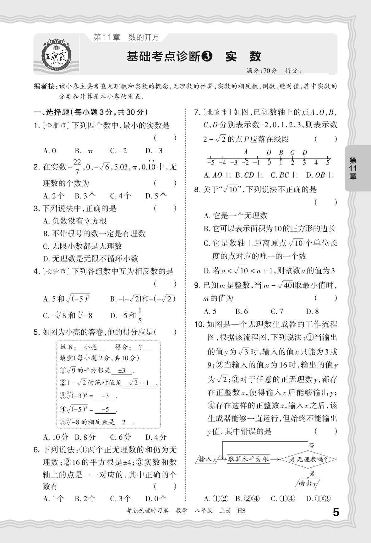 2024秋上册八年级数学华师版 第11章 基础考点诊断 实数【3】