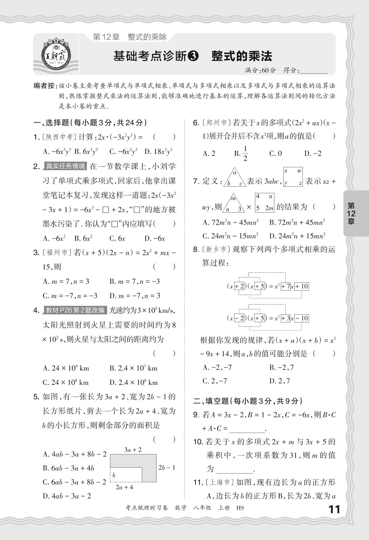 2024秋上册八年级数学华师版 第12章 基础考点诊断 整式的乘法【3】