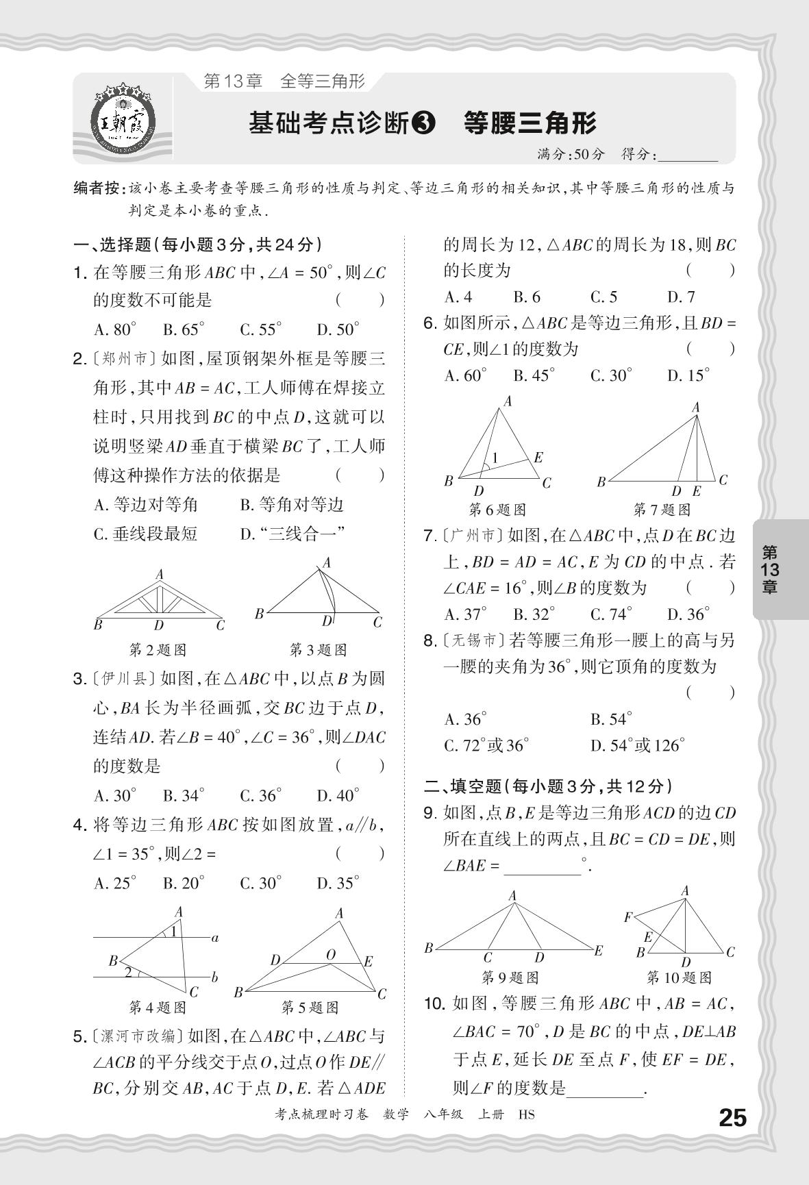 2024秋上册八年级数学华师版 第13章 基础考点诊断 等腰三角形【3】