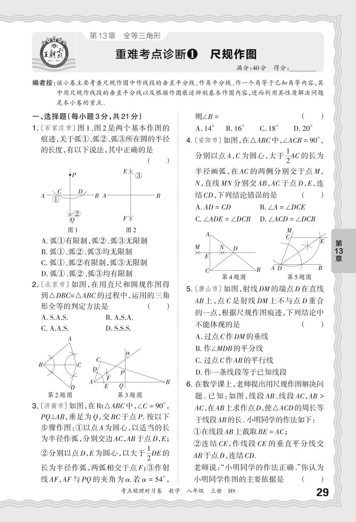 2024秋上册八年级数学华师版 第13章 重难考点诊断 尺规作图【1】
