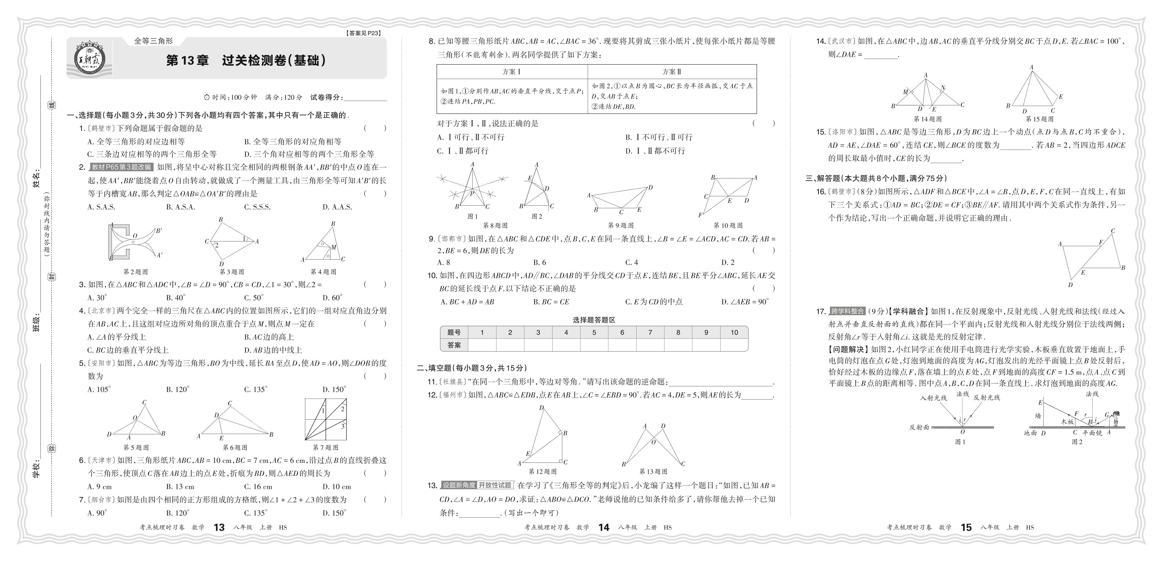 2024秋上册八年级数学华师版 第13章 过关检测卷(基础)