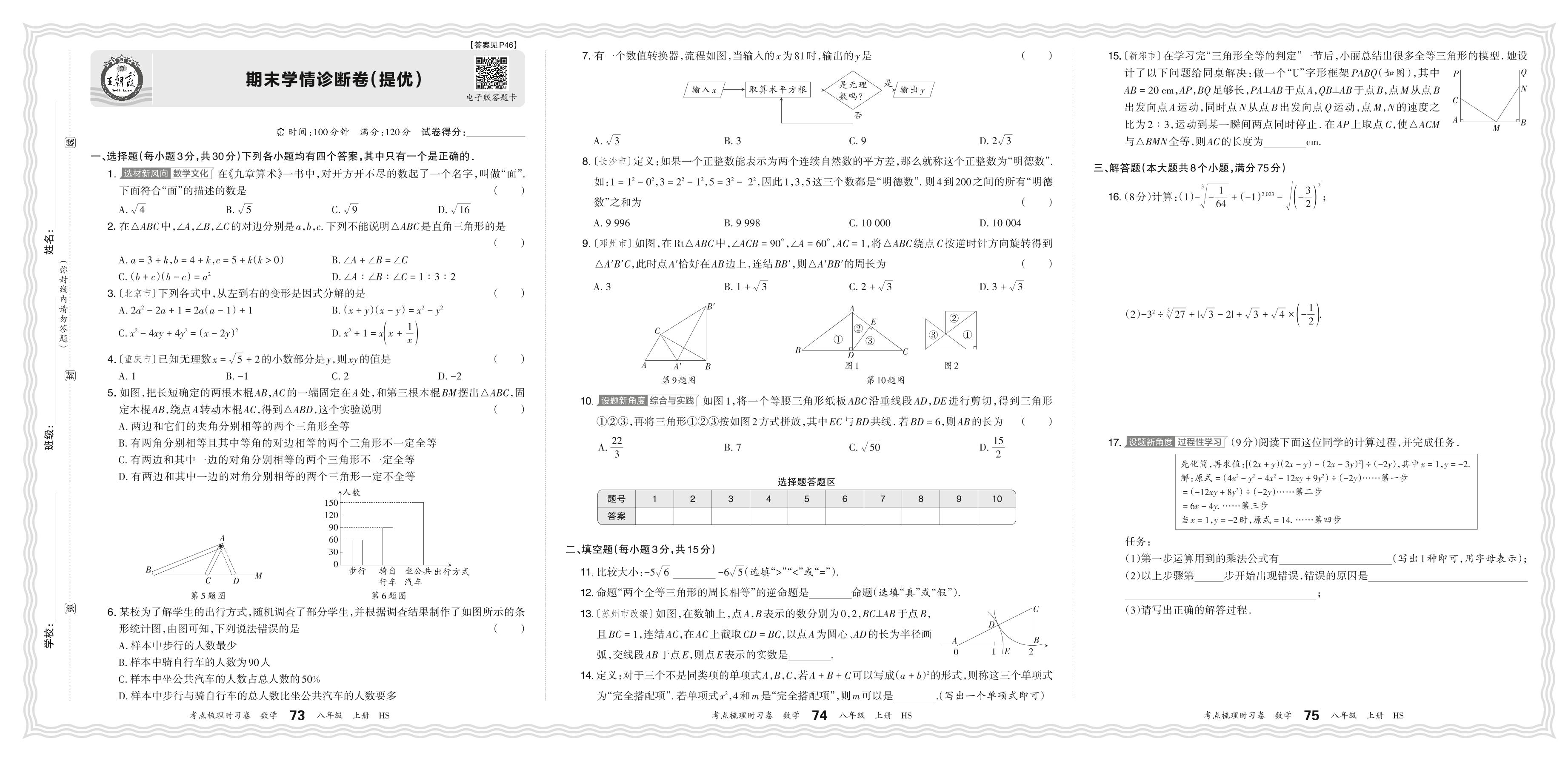 2024秋上册八年级数学华师版 期末学情诊断卷(提优)