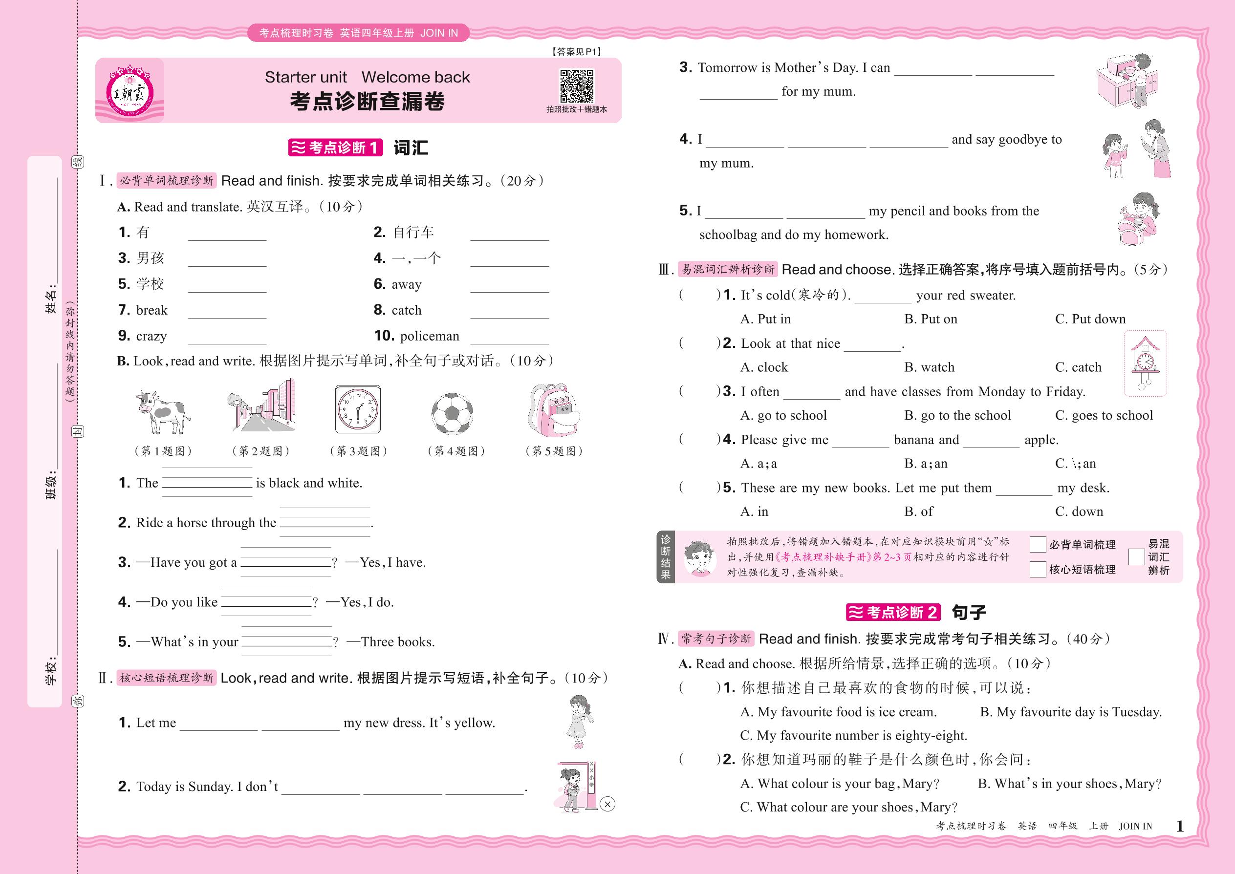 2024秋上册四年级英语剑桥版 Starter unit 考点诊断查漏卷