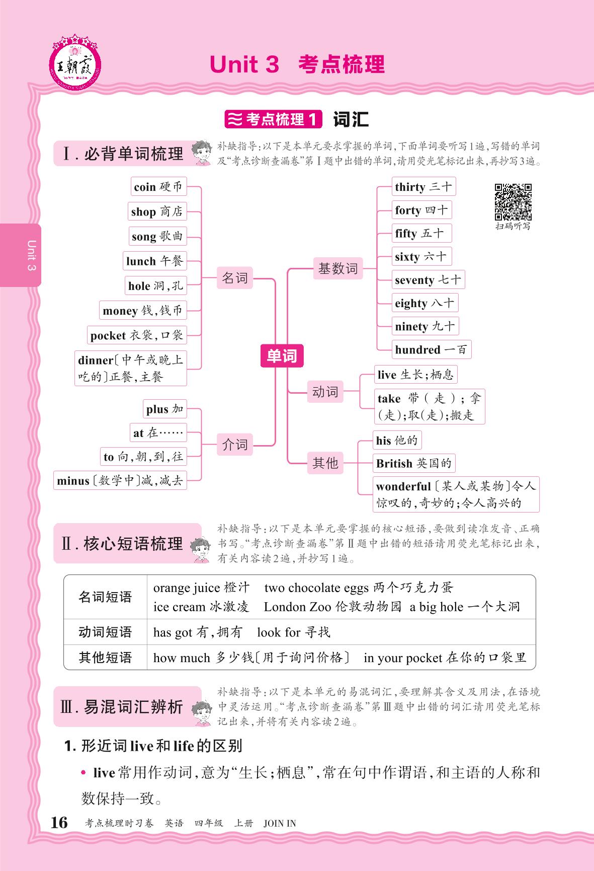 2024秋上册四年级英语剑桥版 考点梳理补缺手册——Unit 3
