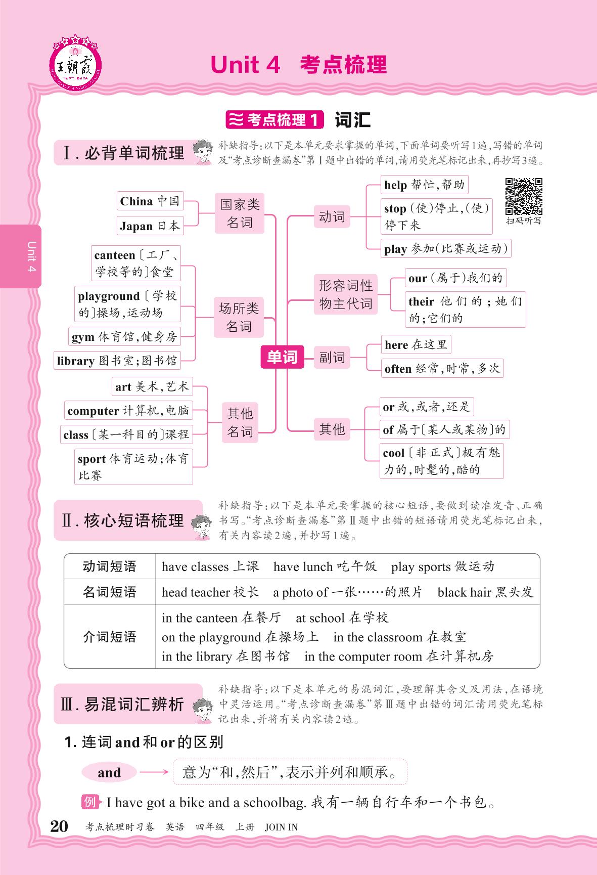 2024秋上册四年级英语剑桥版 考点梳理补缺手册——Unit 4