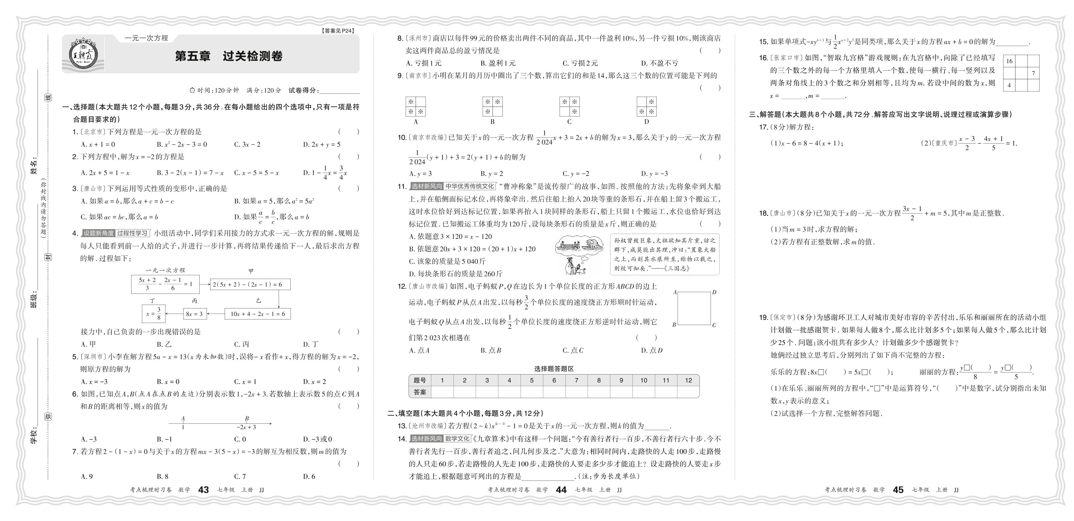2024秋上册七年级数学冀教版 第五章 过关检测卷