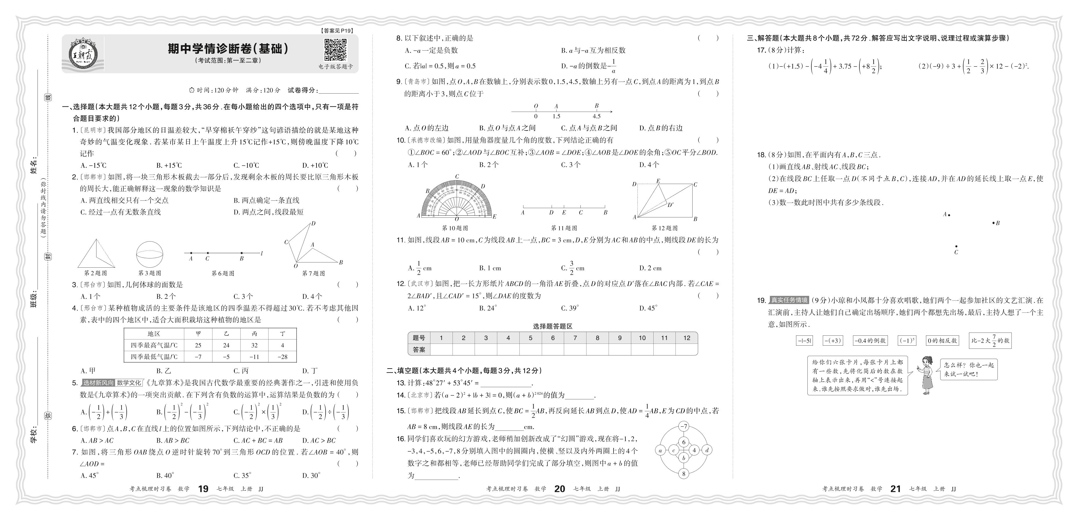 2024秋上册七年级数学冀教版 期中学情诊断卷(基础)