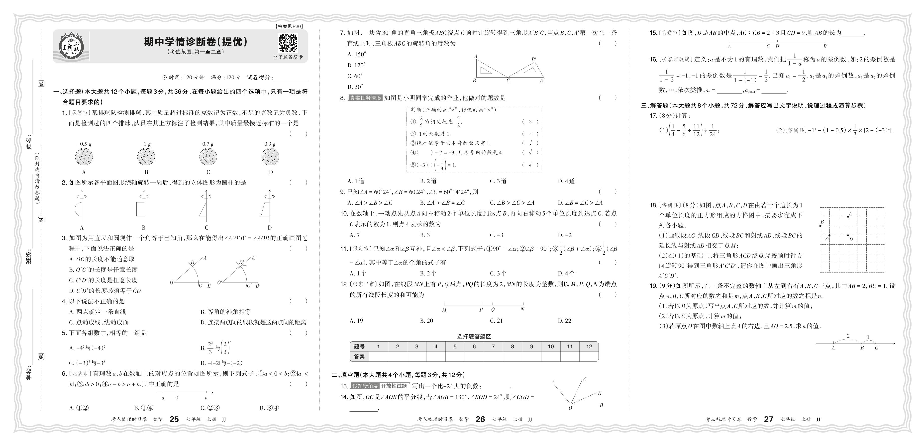 2024秋上册七年级数学冀教版 期中学情诊断卷(提优)