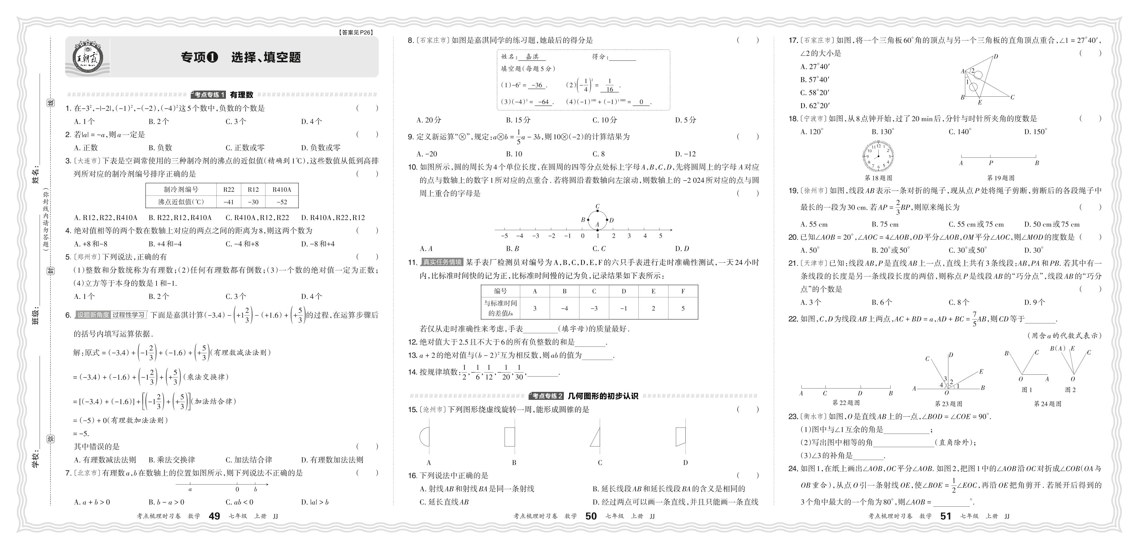 2024秋上册七年级数学冀教版 期末专项卷KD版·选择、填空题【1】