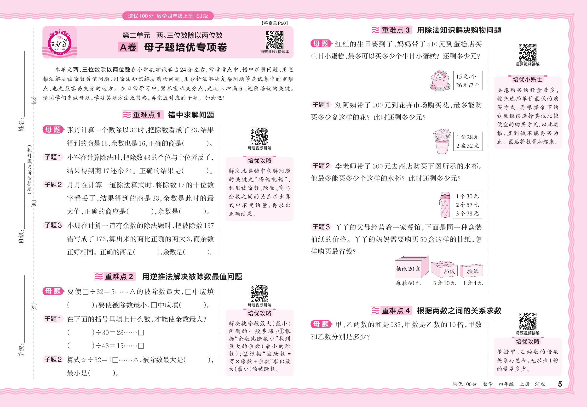 2024秋上册四年级数学苏教版 第二单元A卷 母子题培优专项卷_R240827105838879
