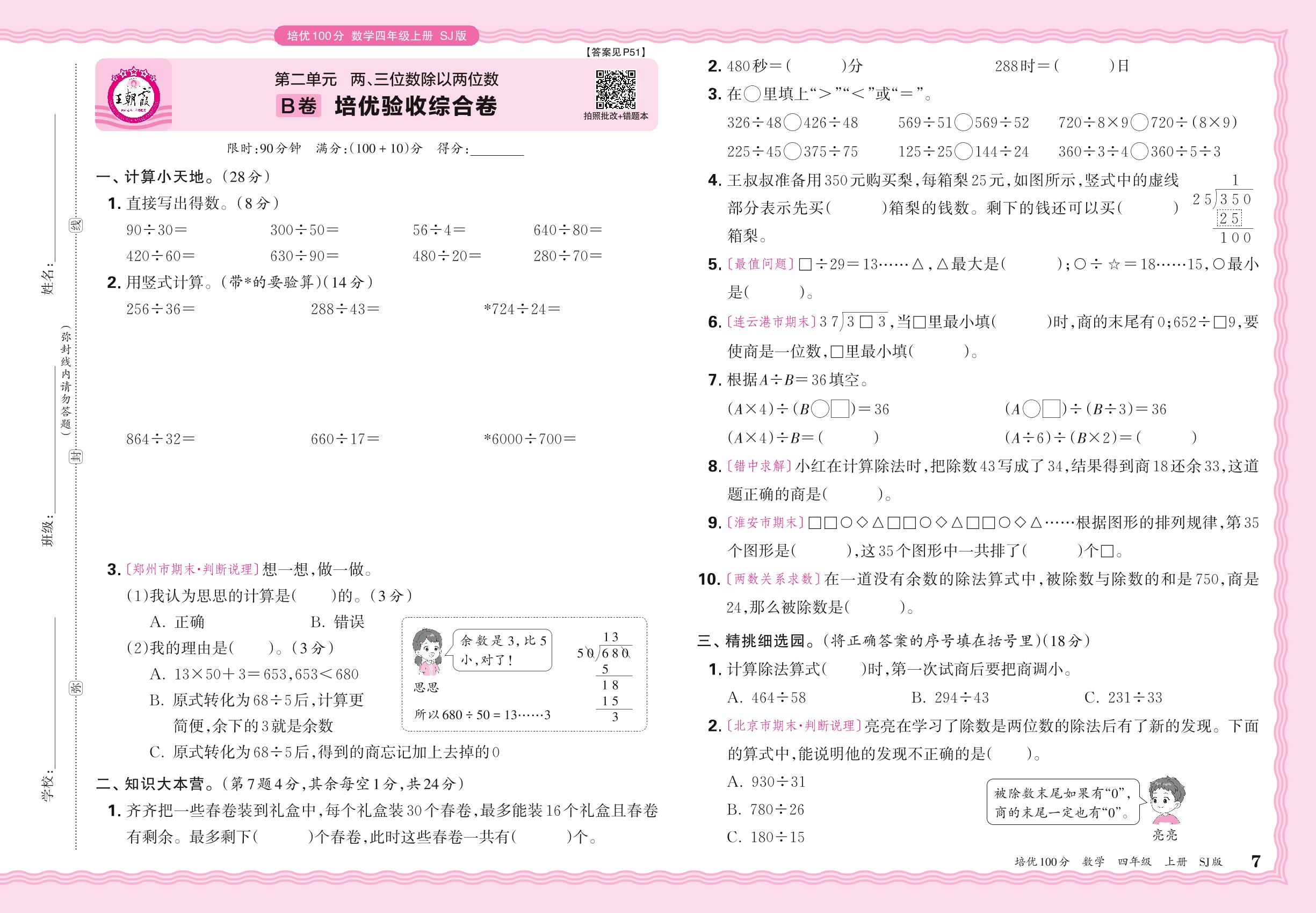 2024秋上册四年级数学苏教版 第二单元B卷 培优验收综合卷_R240827105838481