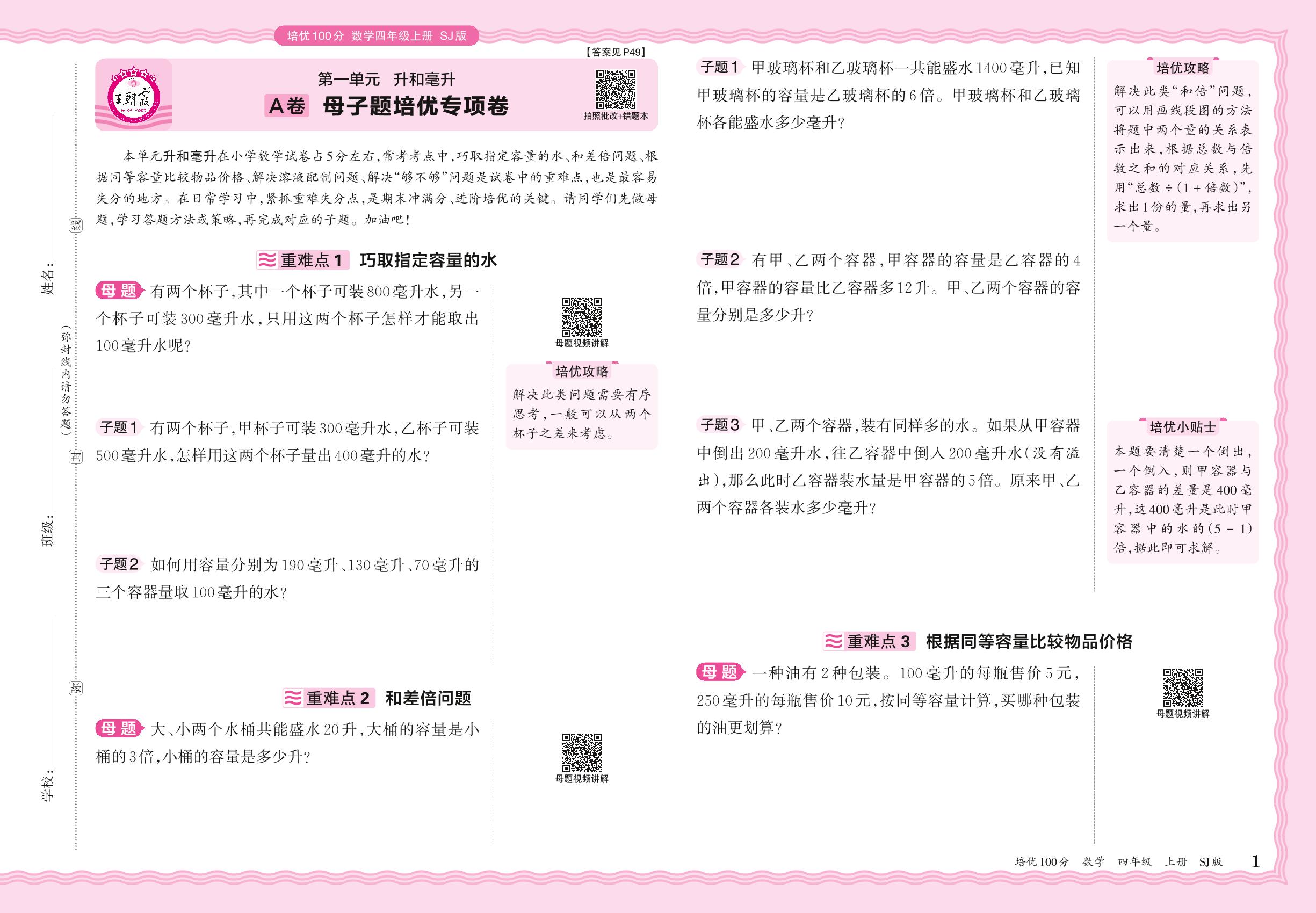 2024秋上册四年级数学苏教版 第一单元A卷 母子题培优专项卷