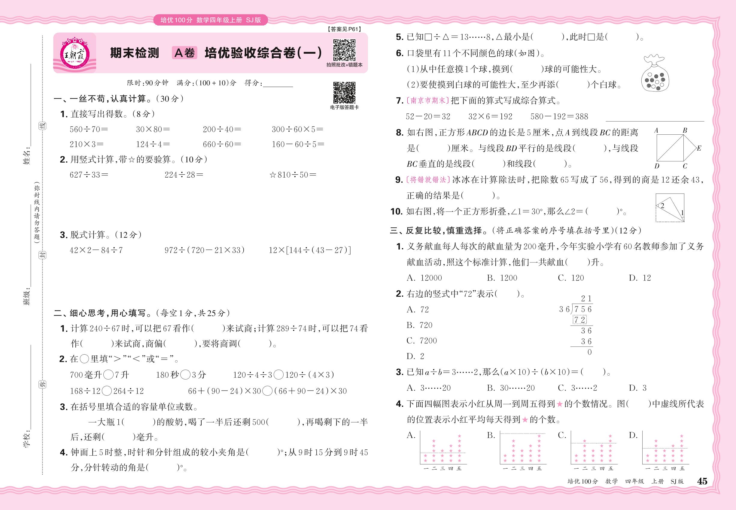 2024秋上册四年级数学苏教版 期末检测A卷 培优验收综合卷(一)_R240827105843113