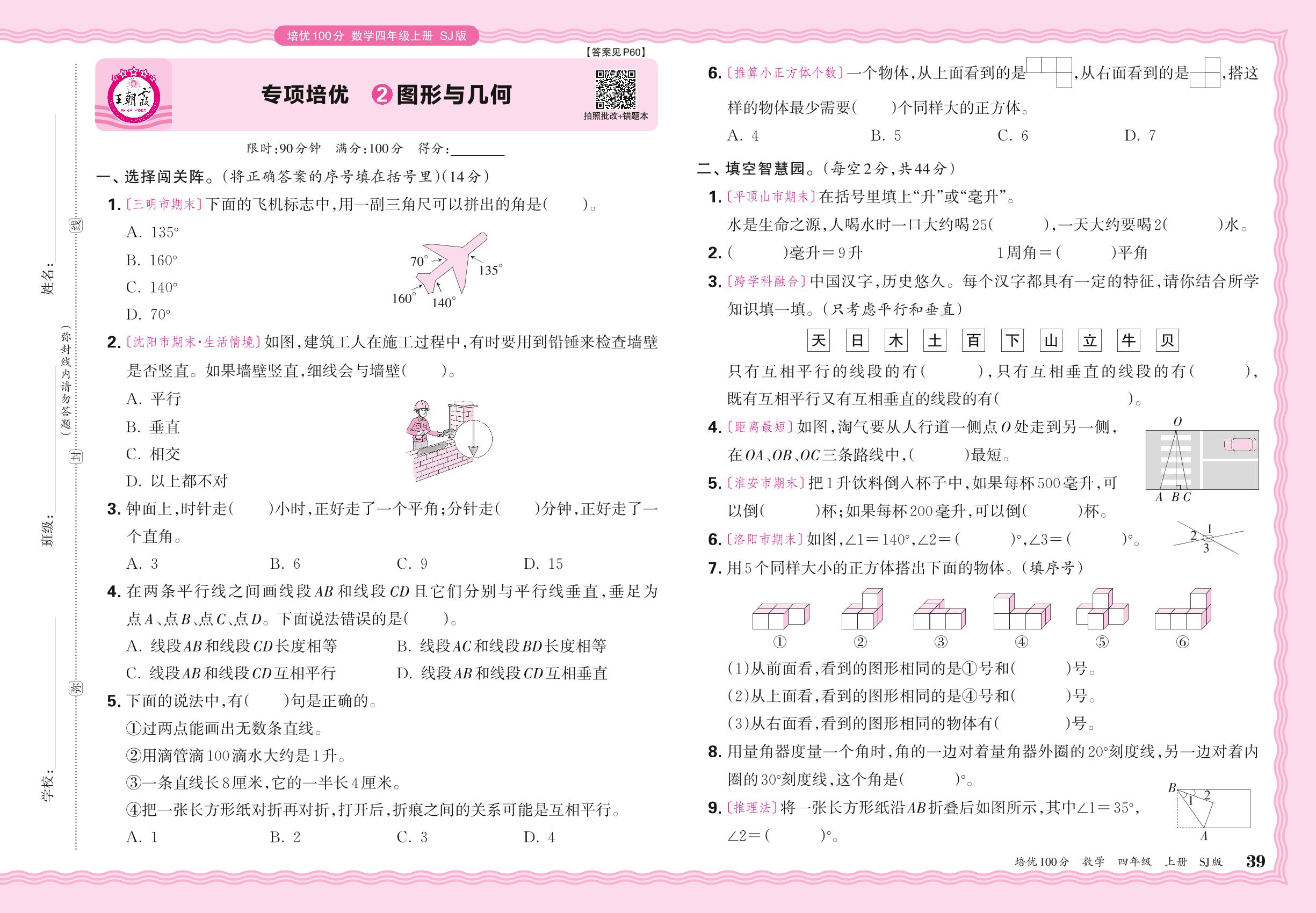 2024秋上册四年级数学苏教版 期末专项卷PY版·图形与几何【2】