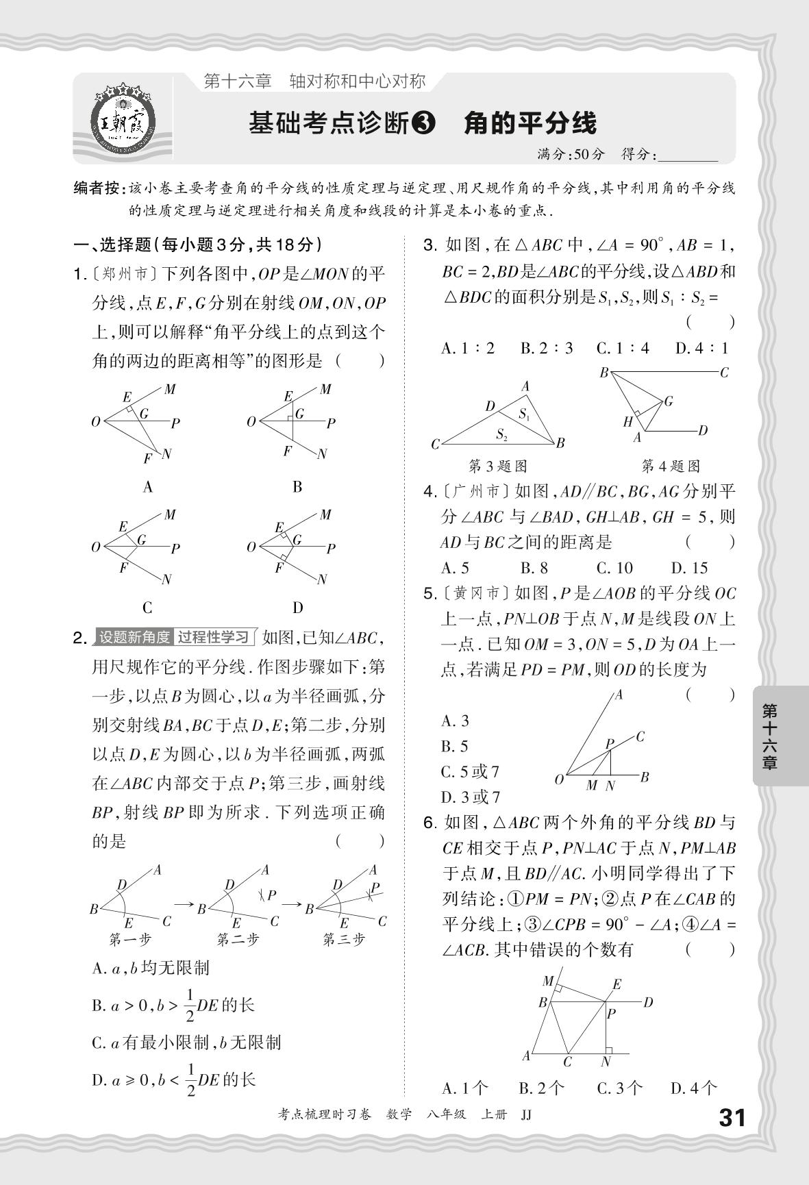 2024秋上册八年级数学冀教版 第十六章 基础考点诊断 角的平分线【3】