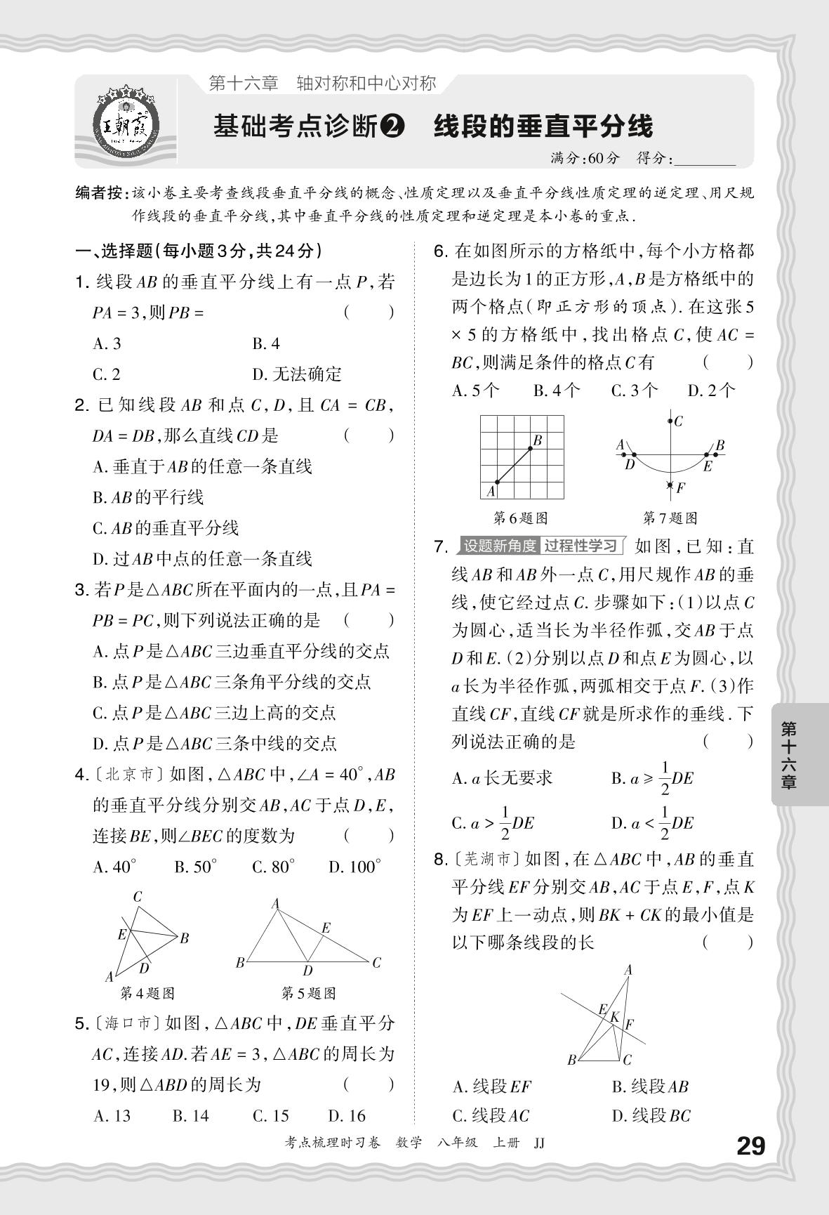 2024秋上册八年级数学冀教版 第十六章 基础考点诊断 线段的垂直平分线【2】
