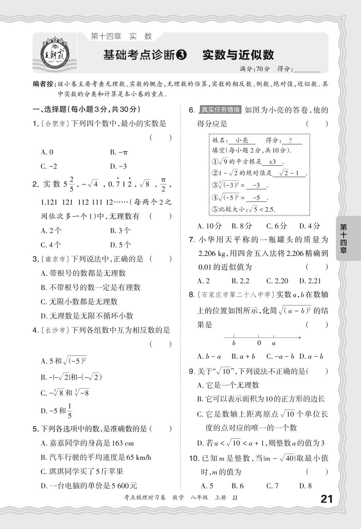 2024秋上册八年级数学冀教版 第十四章 基础考点诊断 实数与近似数【3】