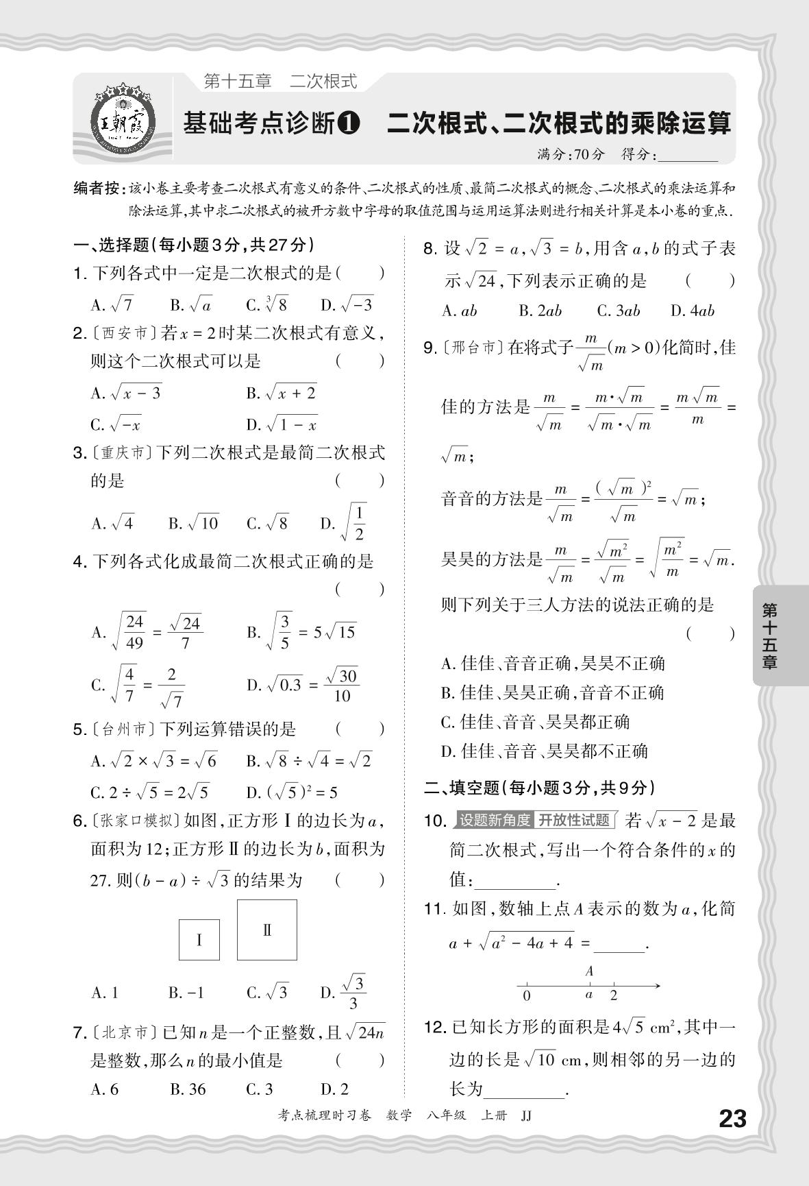 2024秋上册八年级数学冀教版 第十五章 基础考点诊断 二次根式、二次根式的乘除运算【1】