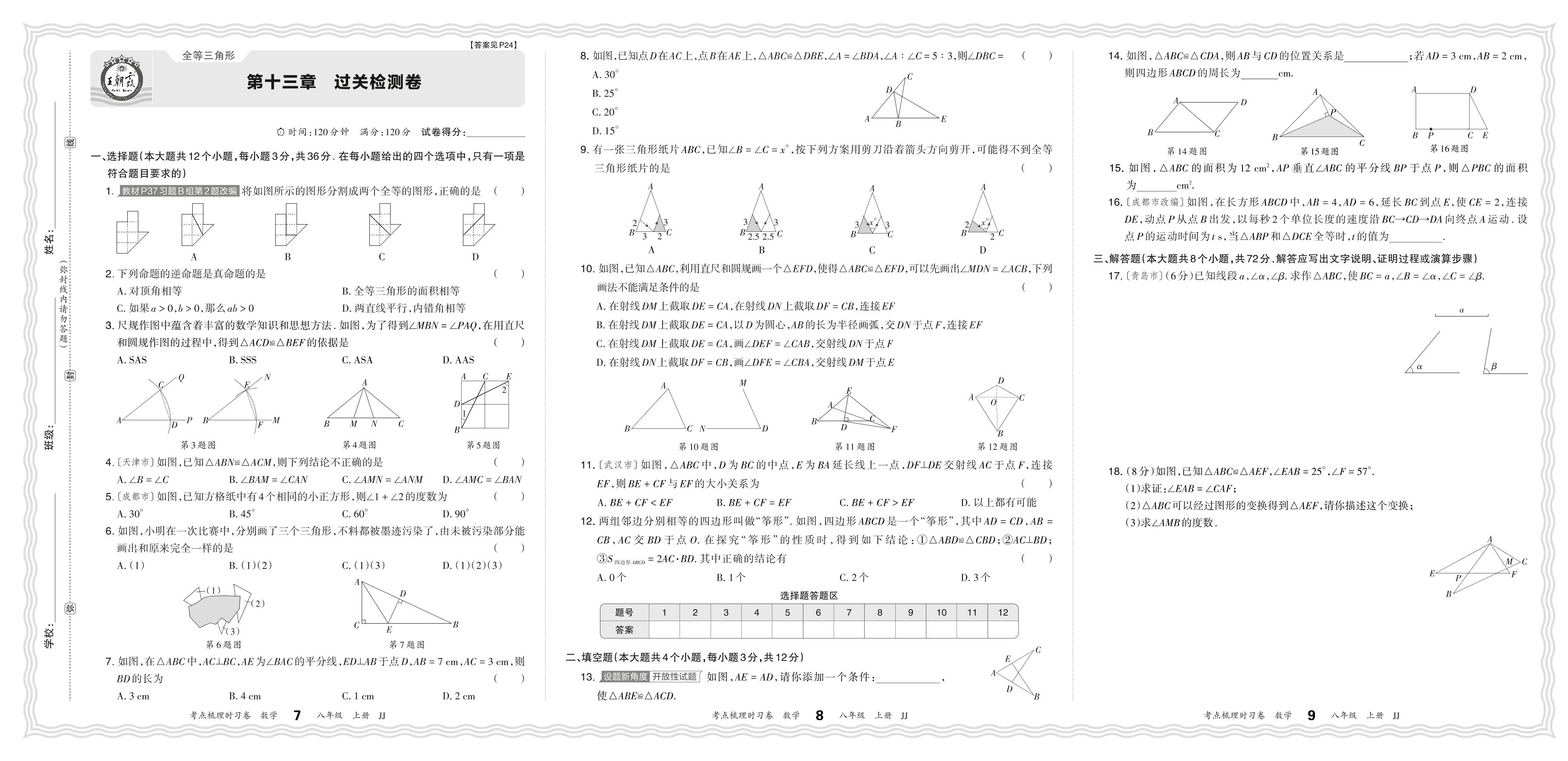2024秋上册八年级数学冀教版 第十三章 过关检测卷