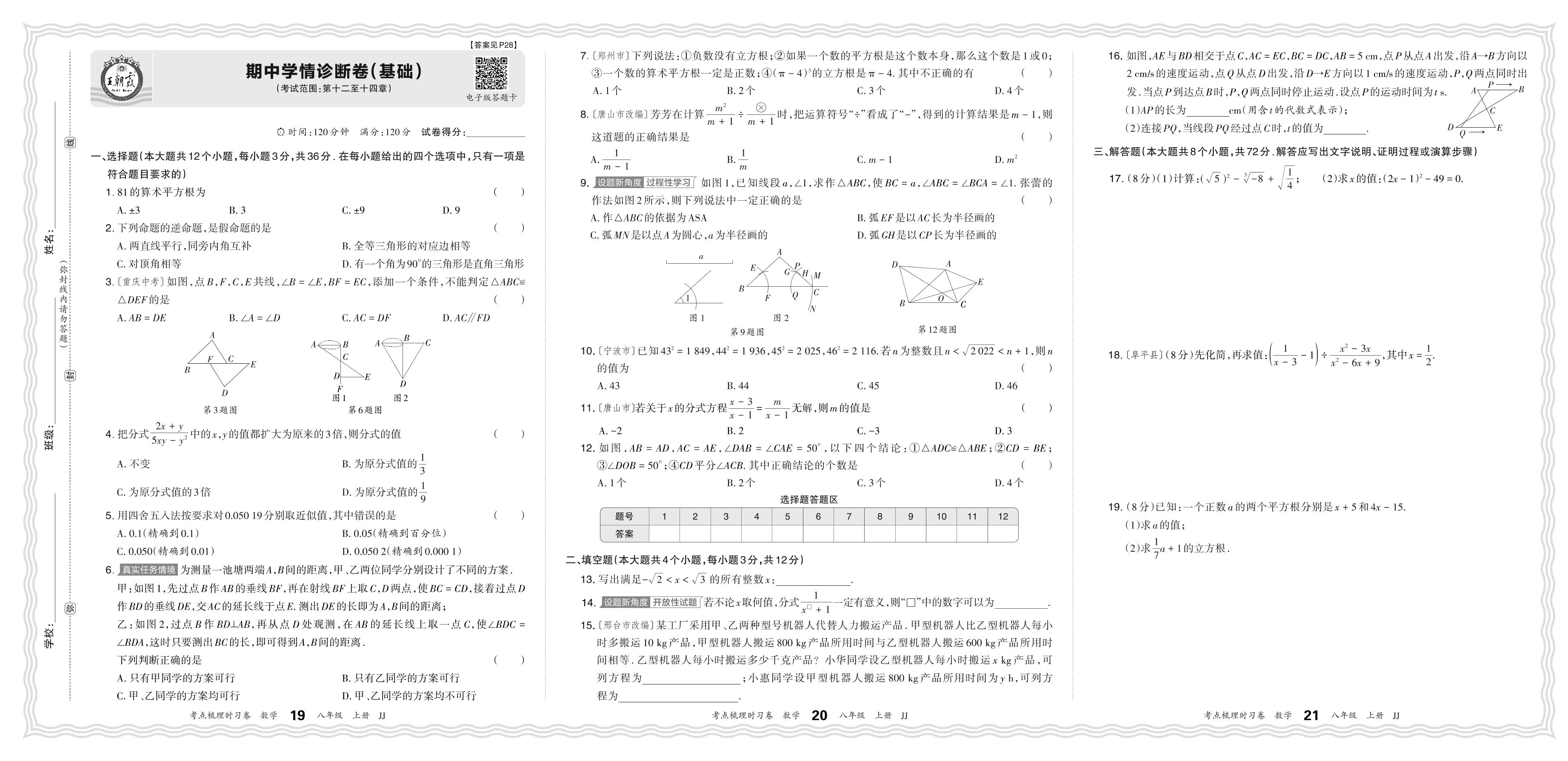2024秋上册八年级数学冀教版 期中学情诊断卷(基础)