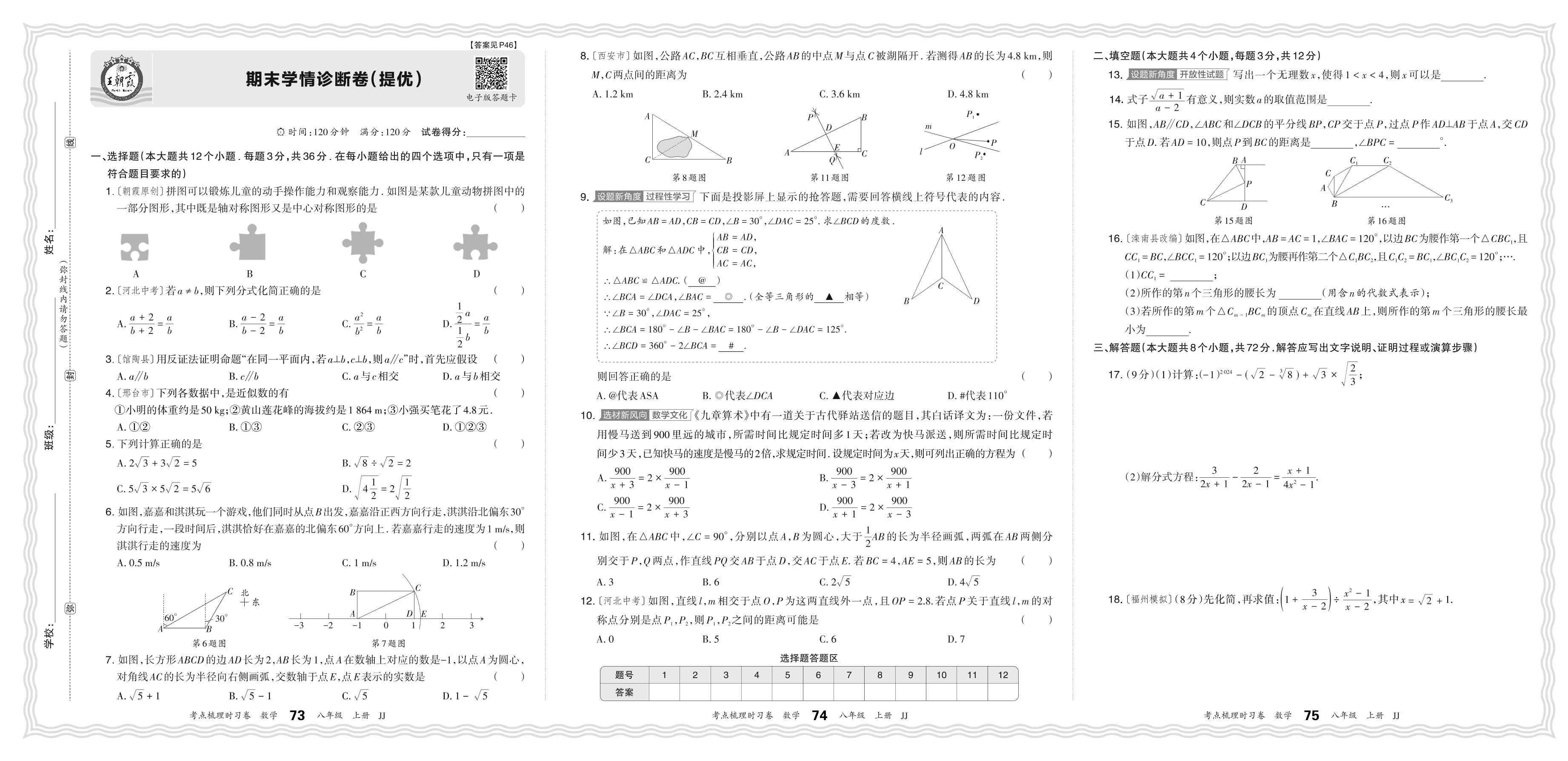 2024秋上册八年级数学冀教版 期末学情诊断卷(提优)