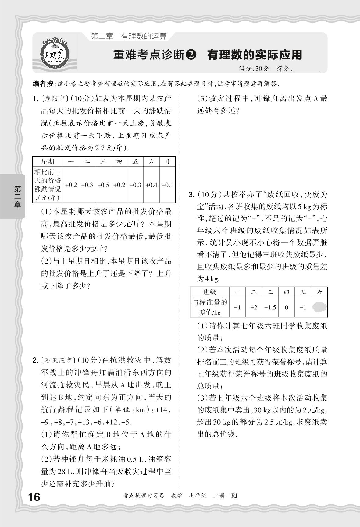 2024秋上册七年级数学人教版 第二章 重难考点诊断 有理数的实际应用【2】
