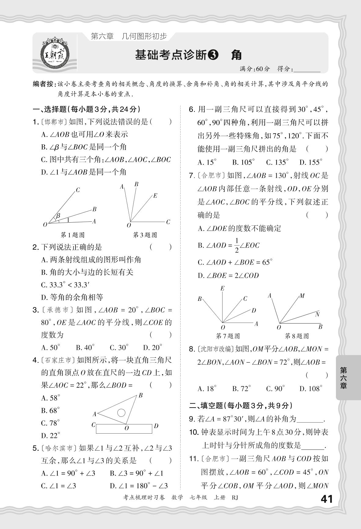 2024秋上册七年级数学人教版 第六章 基础考点诊断 角【3】