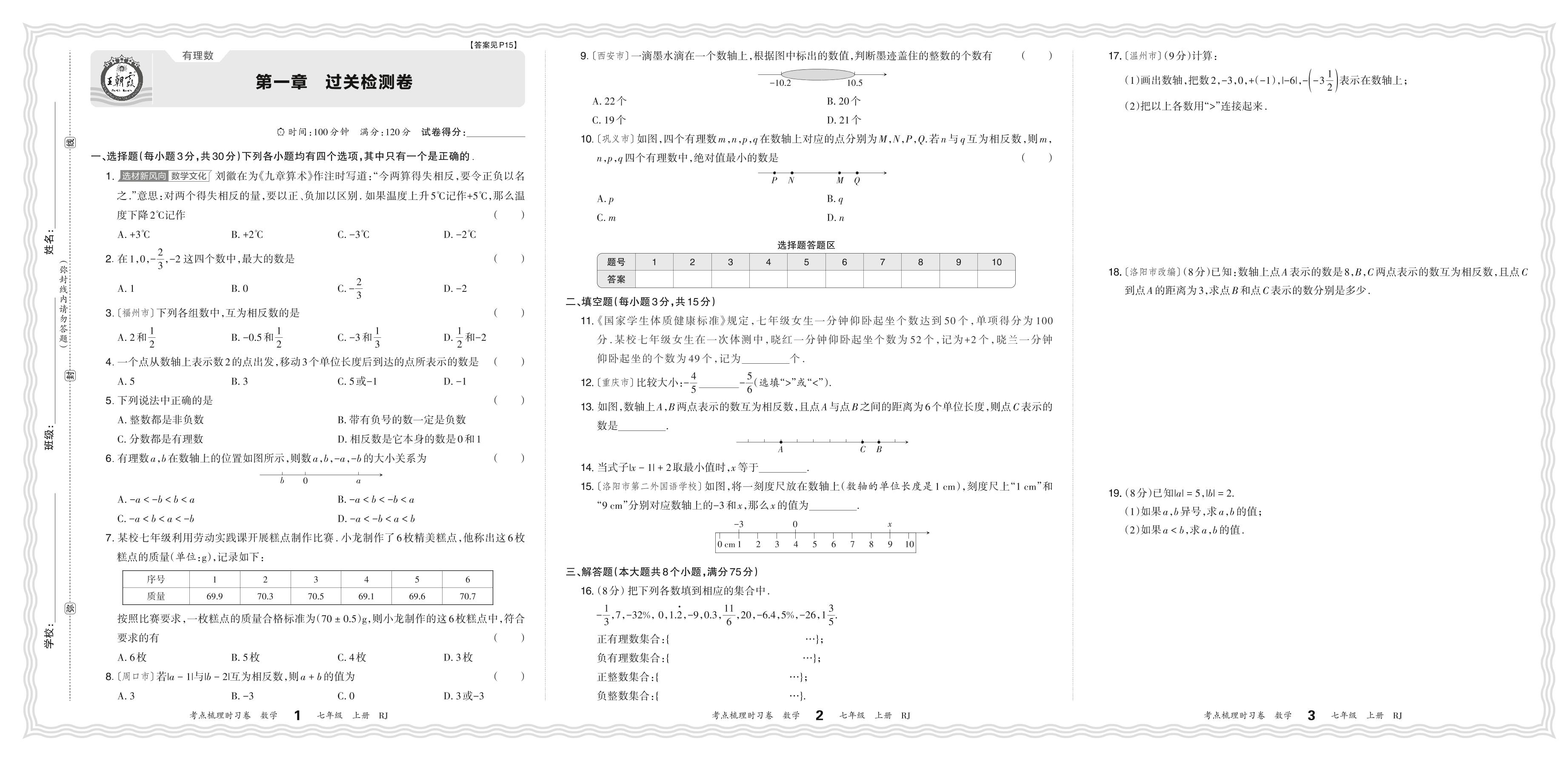 2024秋上册七年级数学人教版 第一章 过关检测卷