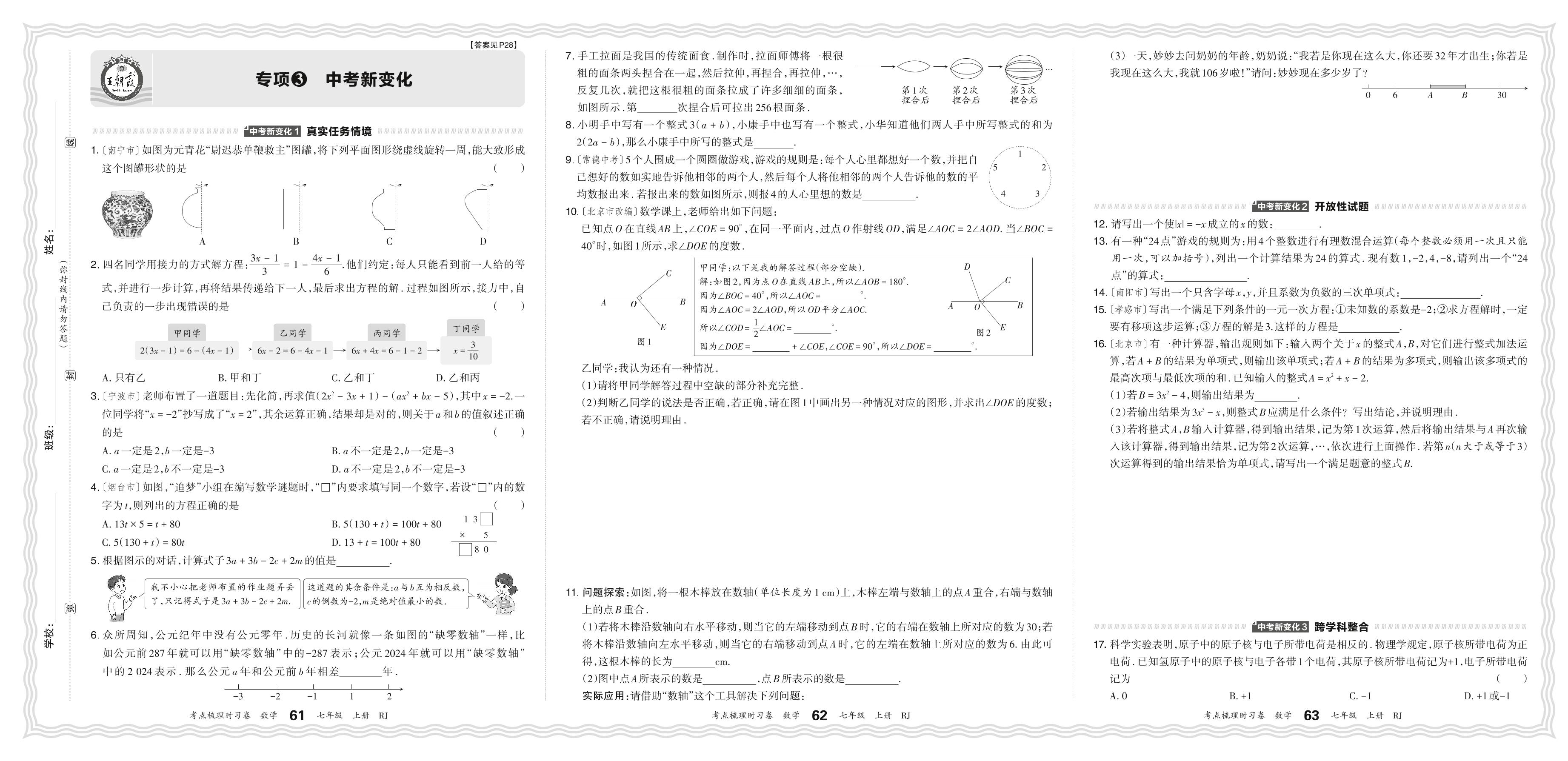 2024秋上册七年级数学人教版 期末专项卷KD版·中考新变化【3】