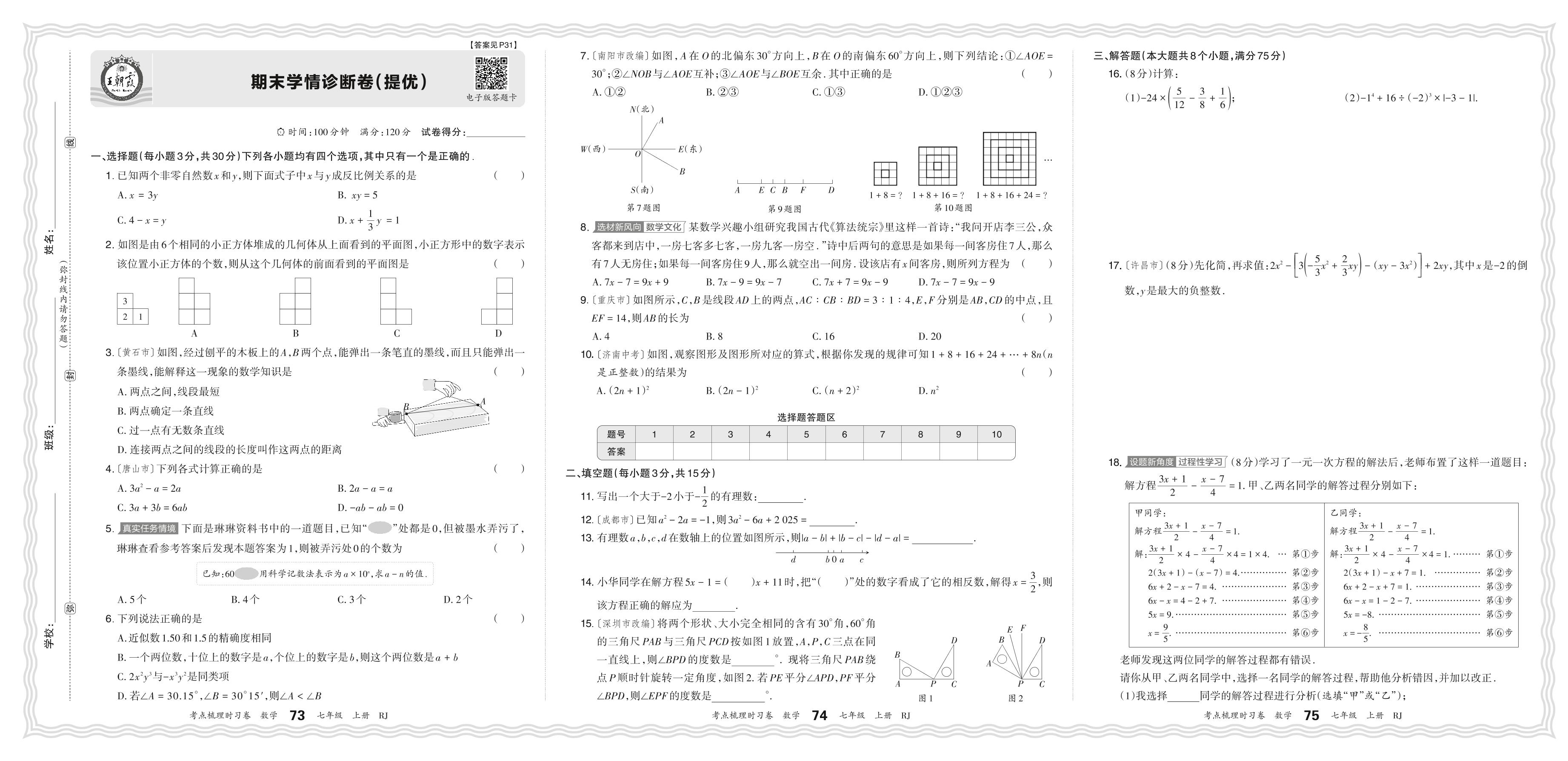 2024秋上册七年级数学人教版 期末学情诊断卷(提优)