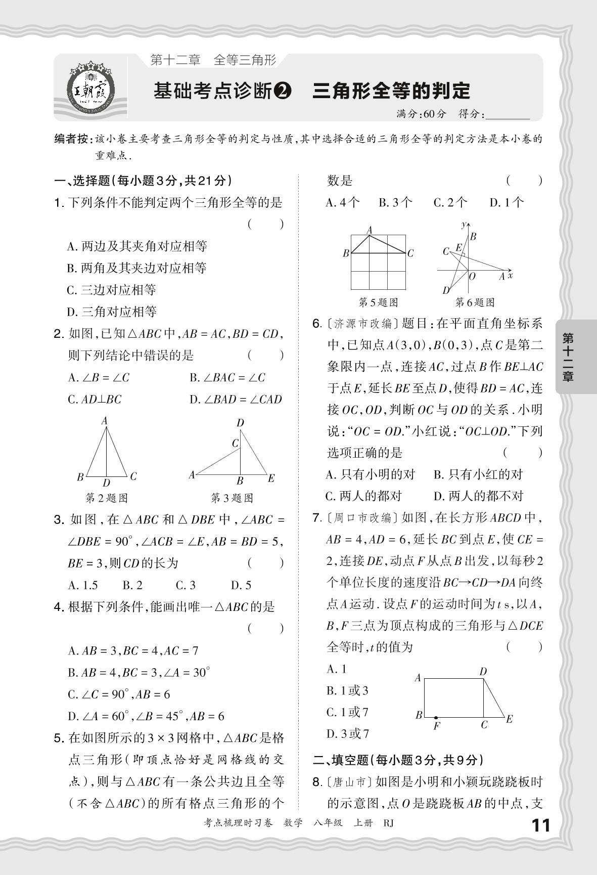 2024秋上册八年级数学人教版 第十二章 基础考点诊断 三角形全等的判定【2】